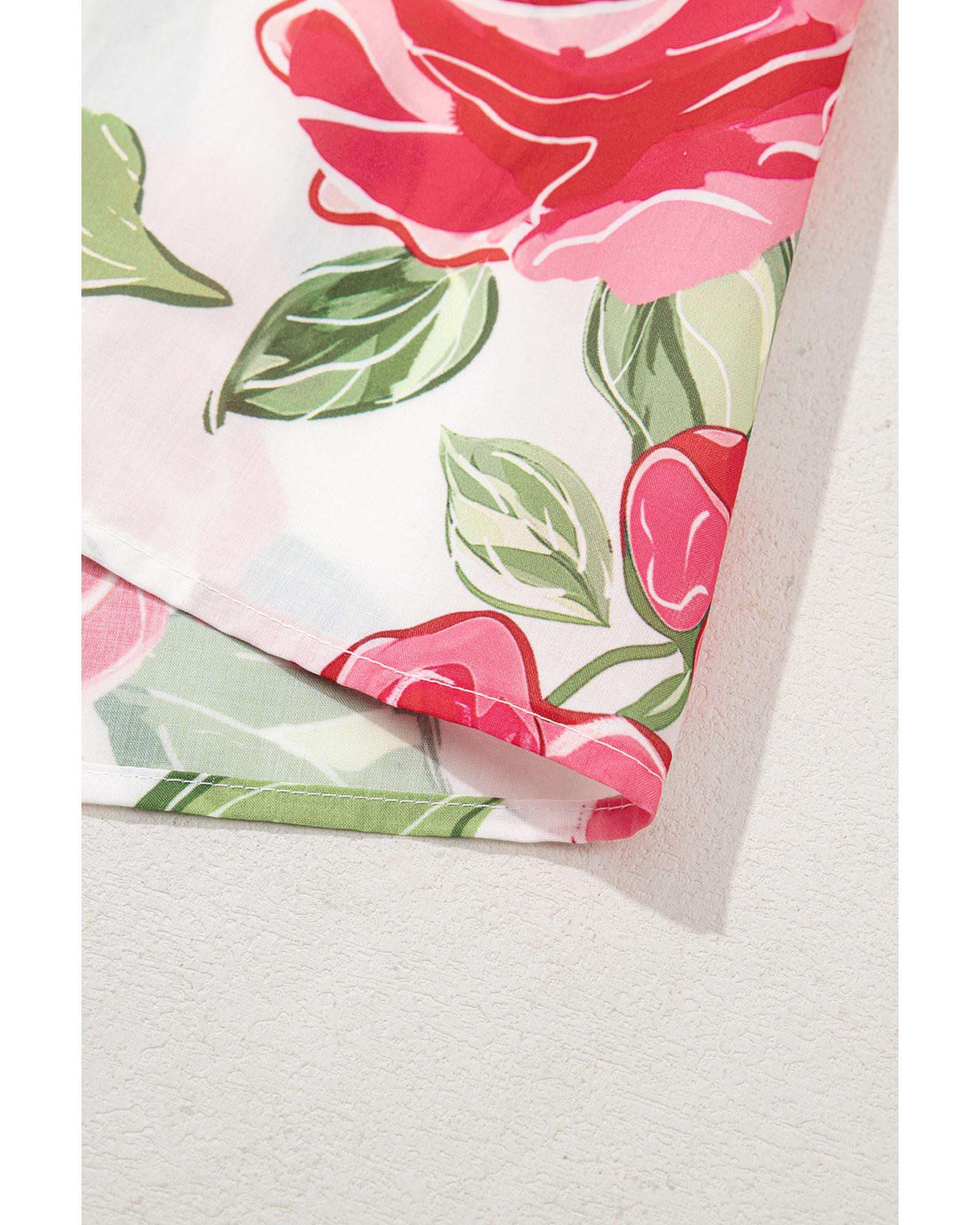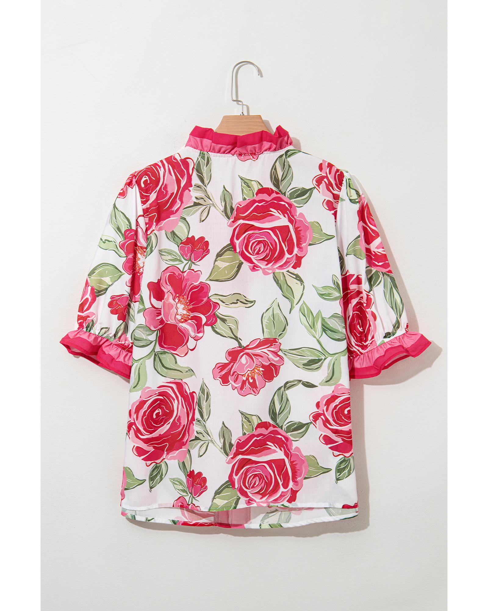 This plus size floral print blouse features a stylish frilled neckline and ruffled puff short sleeves, offering a fashionable and comfortable option for various occasions. Made from lightweight fabric, it provides a comfortable fit and easy wear. The blouse pairs well with jeans, solid pants, and skirts for versatile styling.