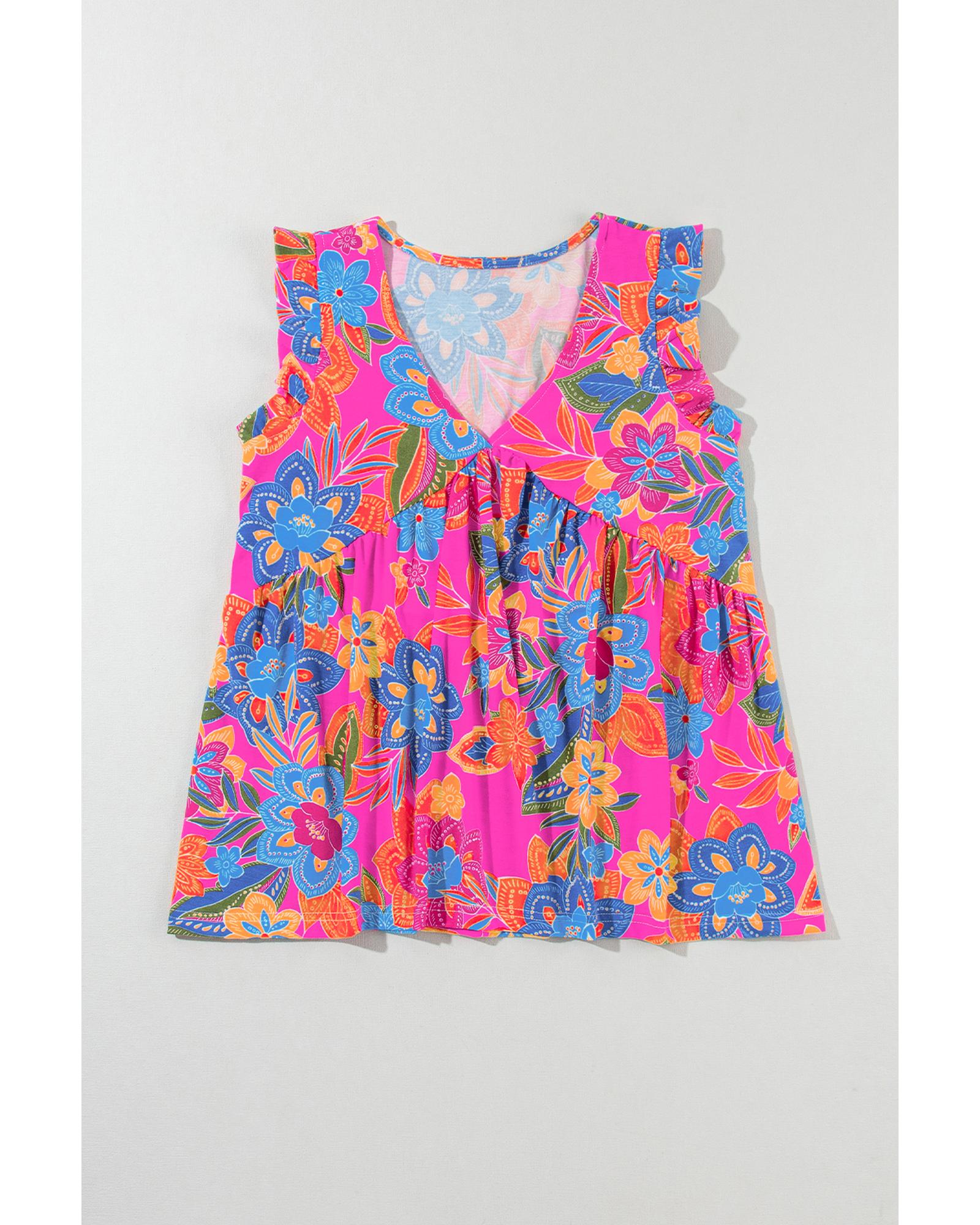 This Rose Red Boho Pattern Print Flounce V Neck Tank Top combines trendy design with a comfortable fit, making it suitable for various casual occasions. Its fashionable floral pattern and elegant flounce detail add a touch of sophistication to your everyday wardrobe.