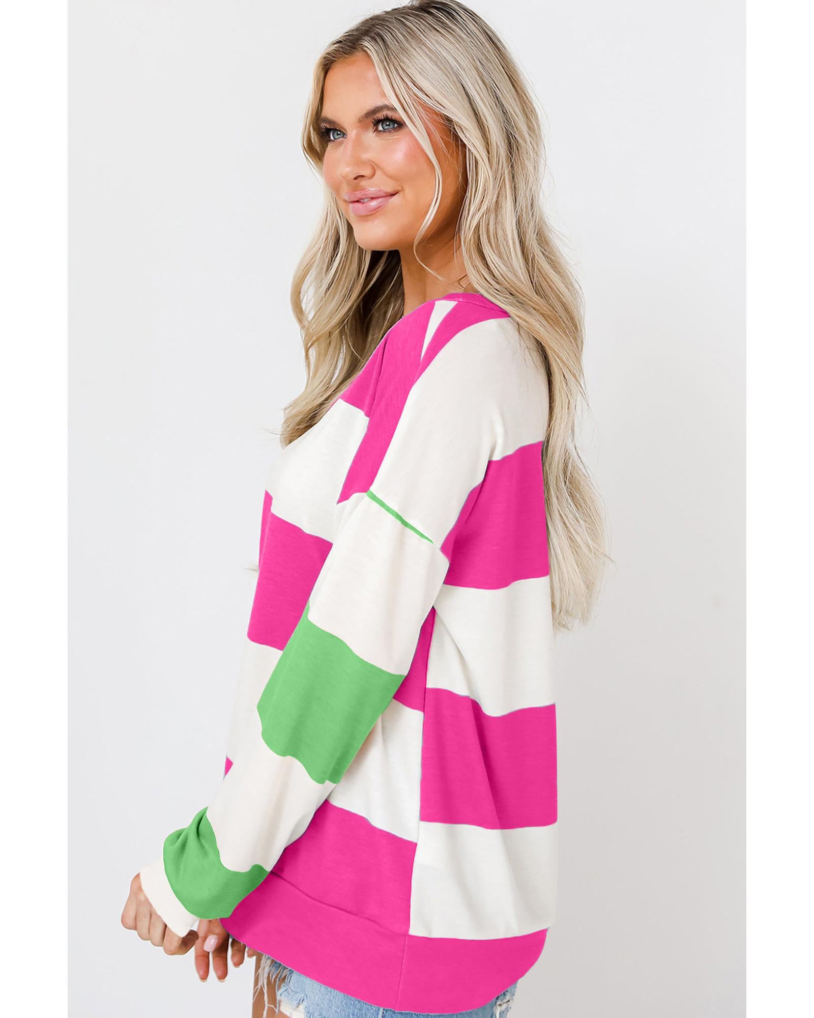 Rose Red Colorblock Striped Drop Shoulder Long Sleeve Top – S
