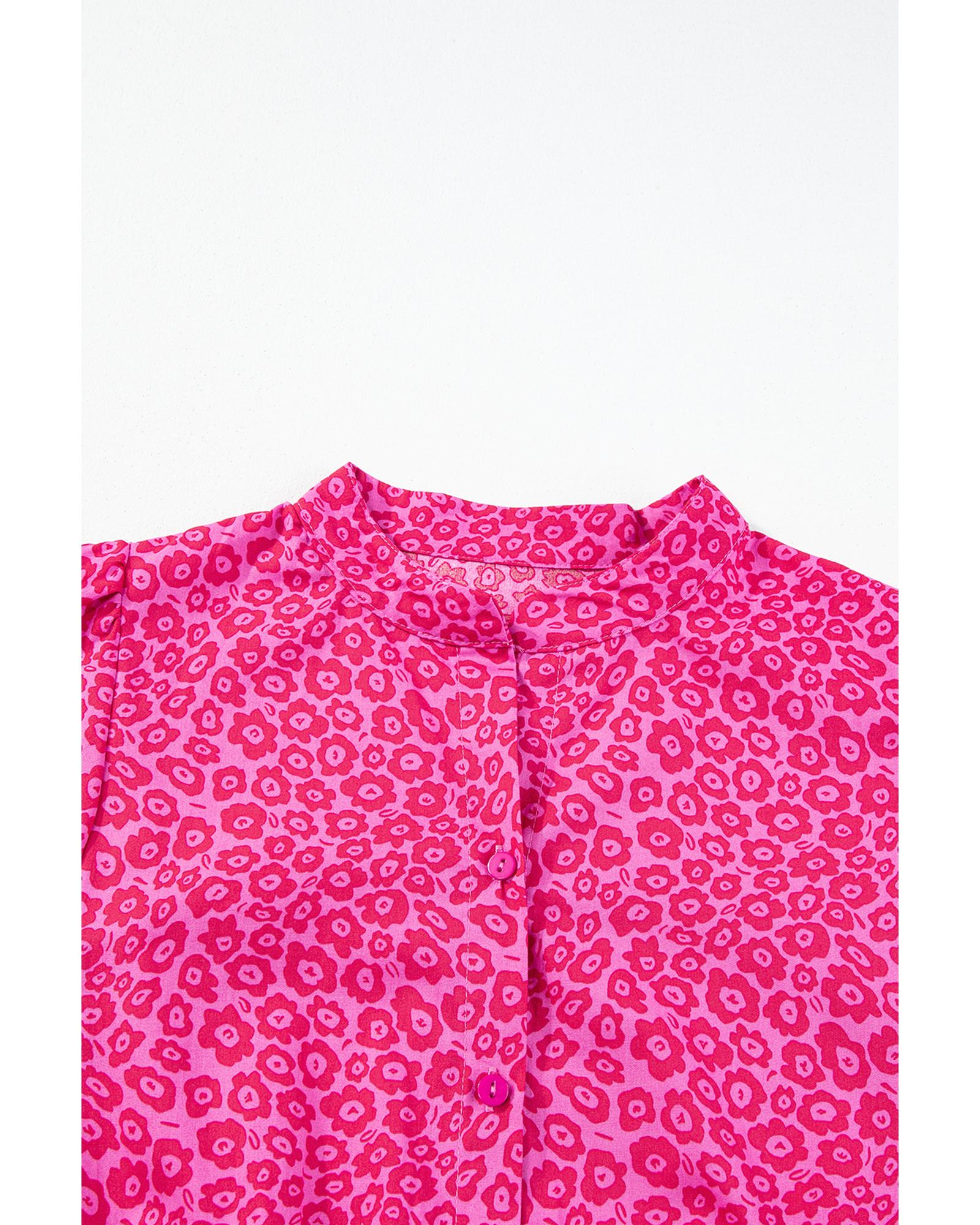 Rose Red Flower Mock Neck Puff Sleeve Tiered Maxi Dress – XL