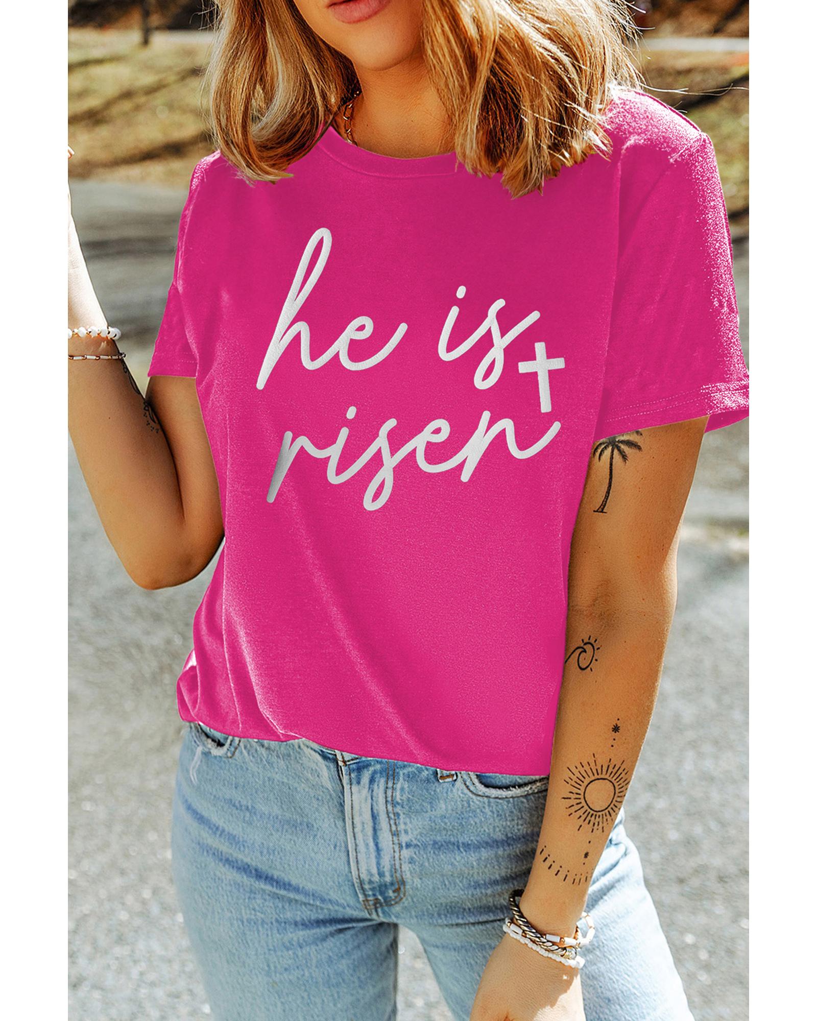 Rose Red Glitter he is risen Cross Printed Crewneck Tee – 2XL