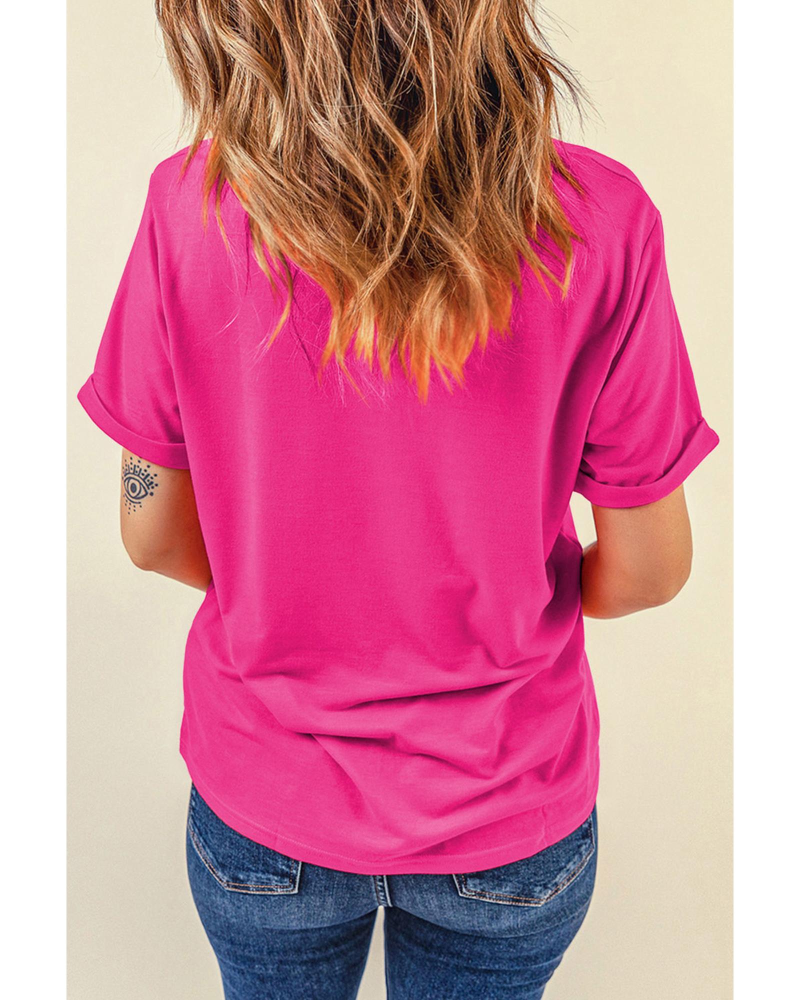 Rose Red Glitter he is risen Cross Printed Crewneck Tee – M