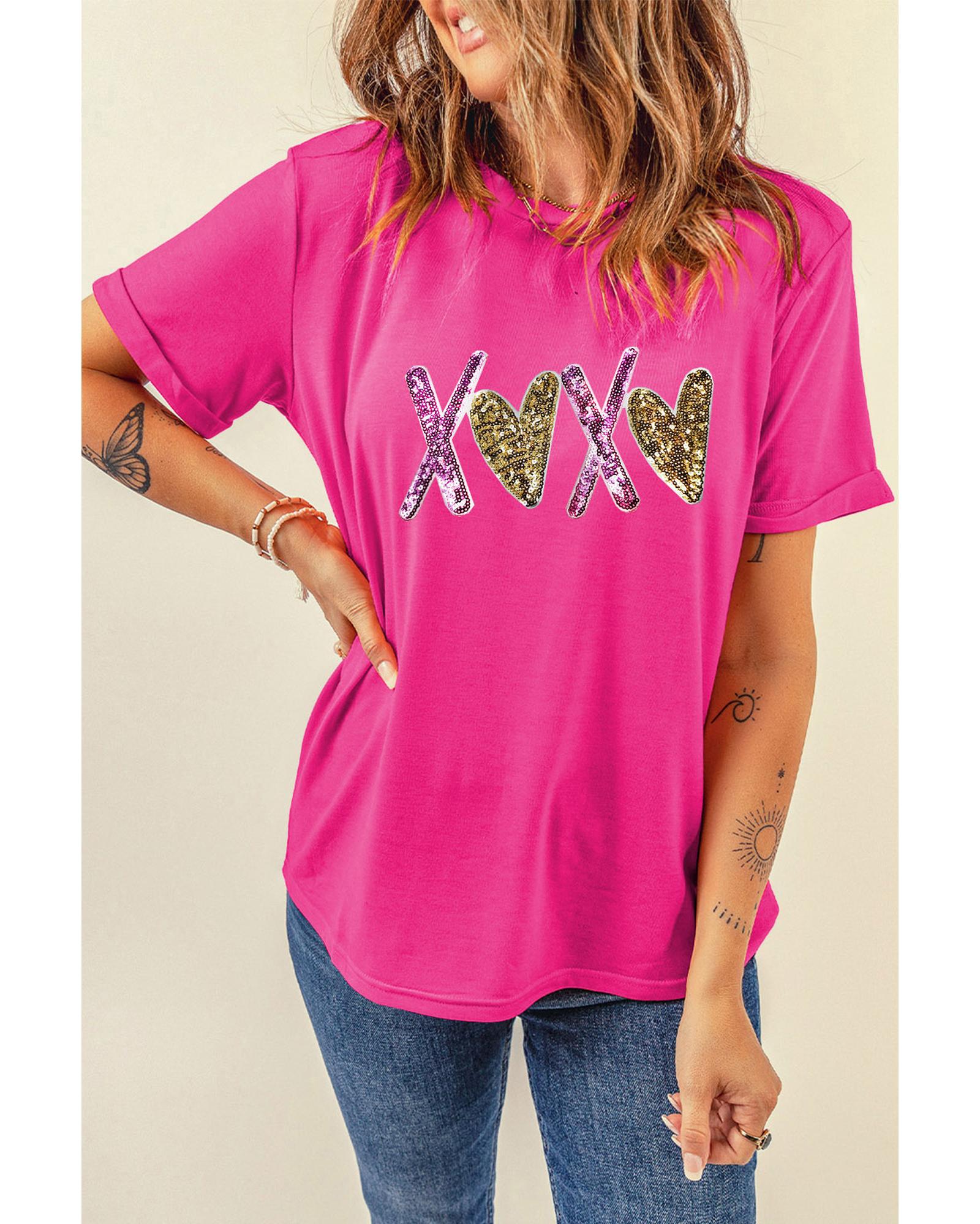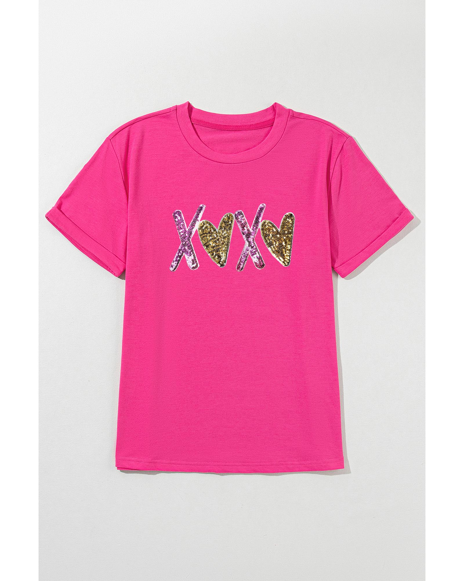 Rose Red Heart XOXO Graphic Crewneck Valentines T Shirt – XL