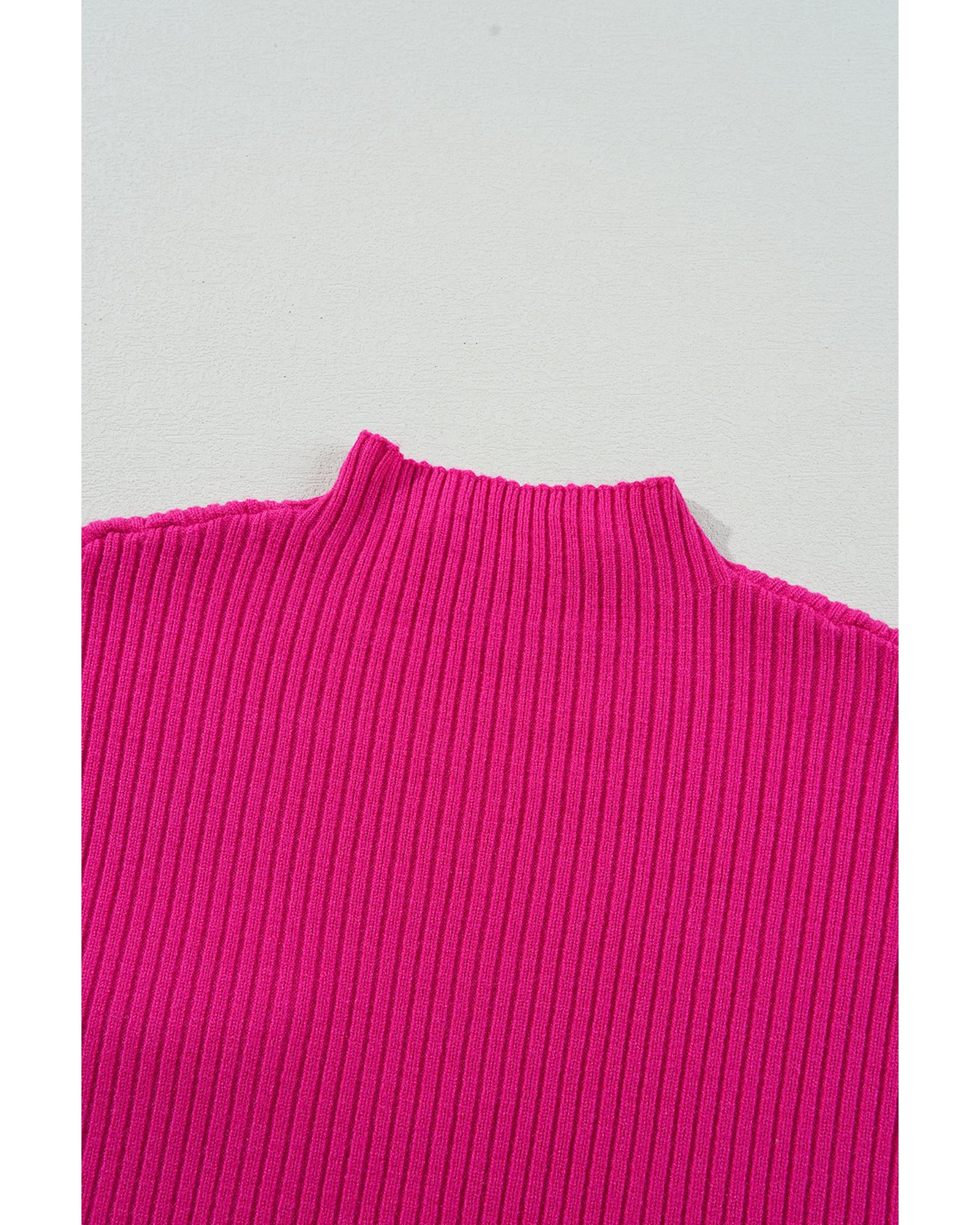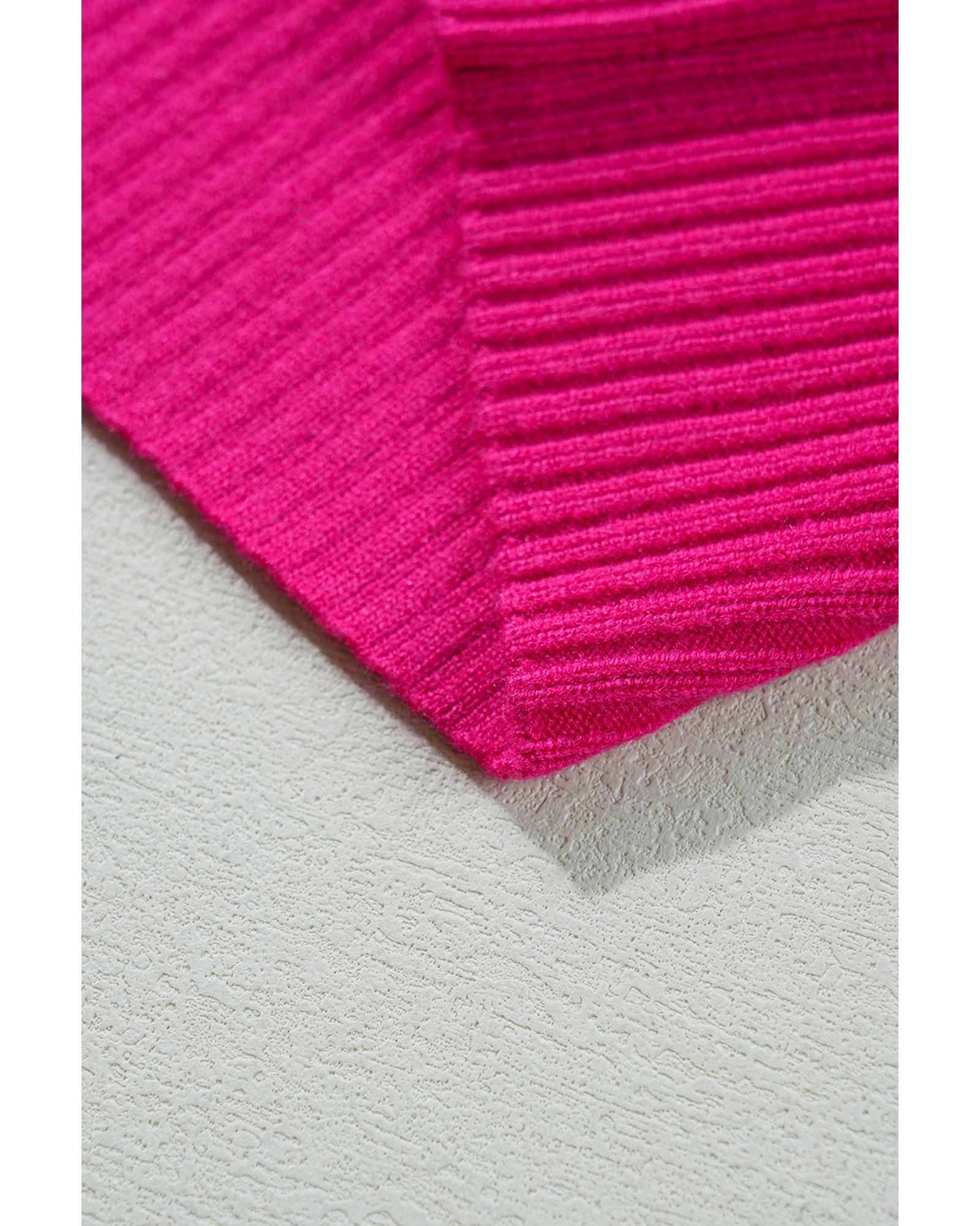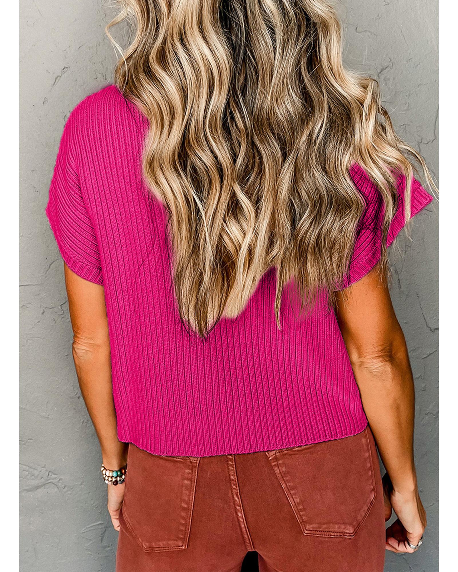 Rose Red Patch Pocket Ribbed Knit Short Sleeve Sweater – L