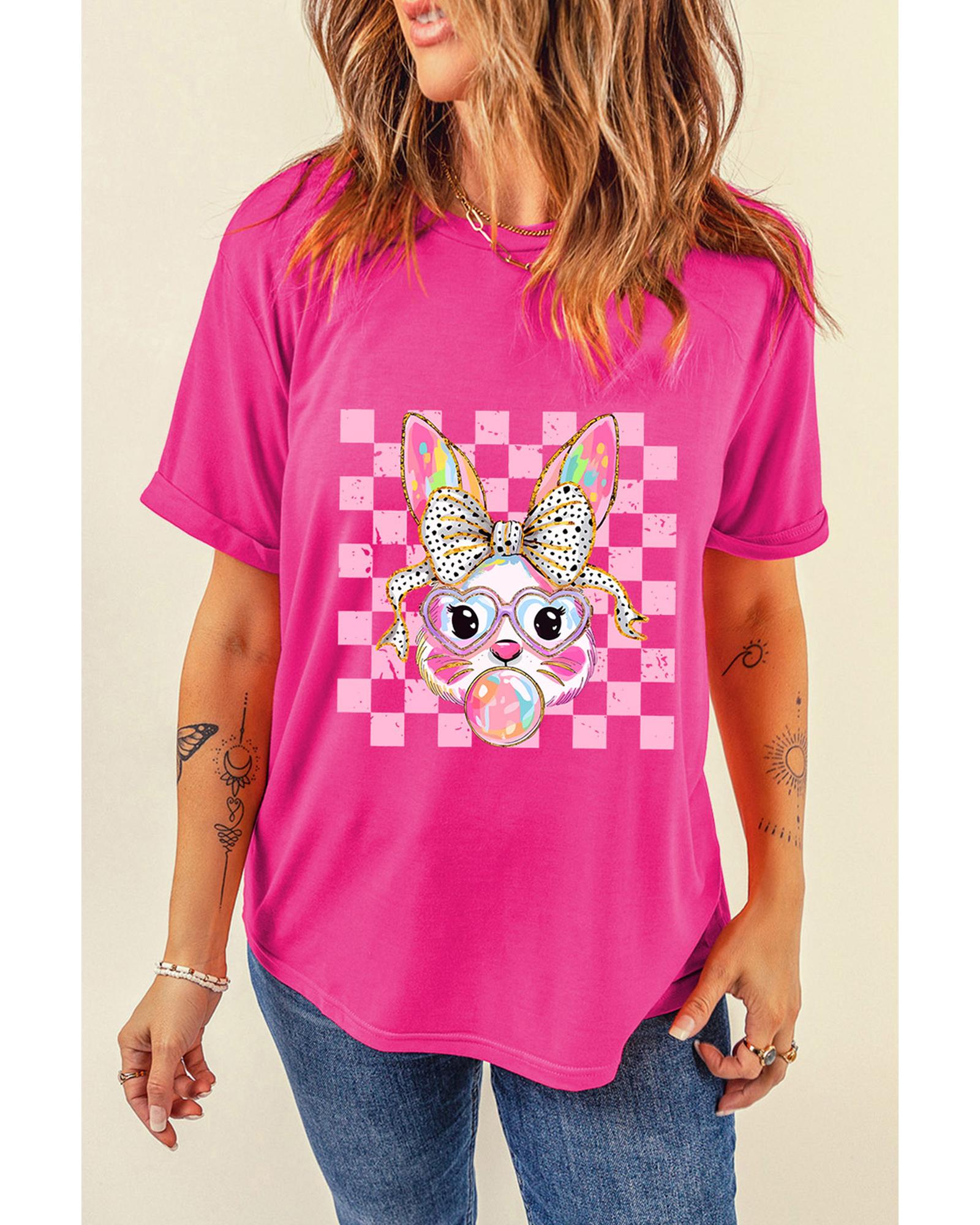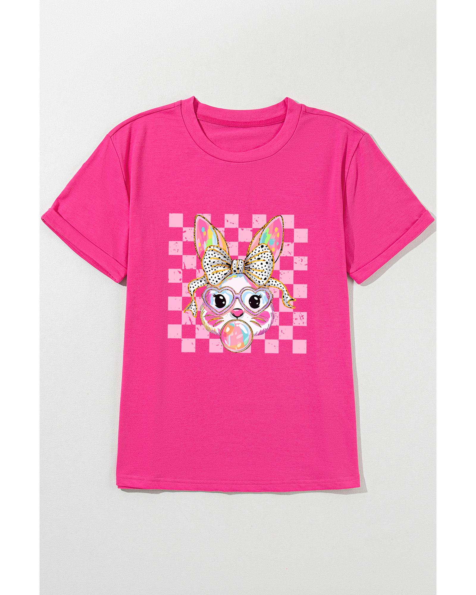 Rose Red Plaid Bubble Gum Rabbit Graphic Eater T Shirt – L