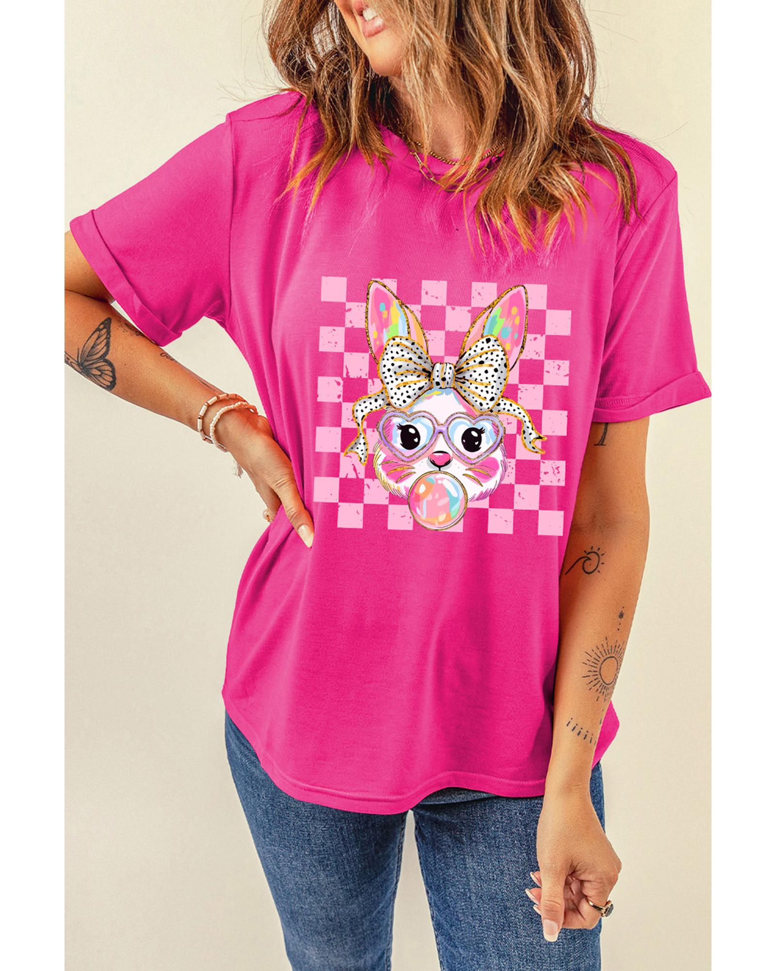 Rose Red Plaid Bubble Gum Rabbit Graphic Eater T Shirt – S