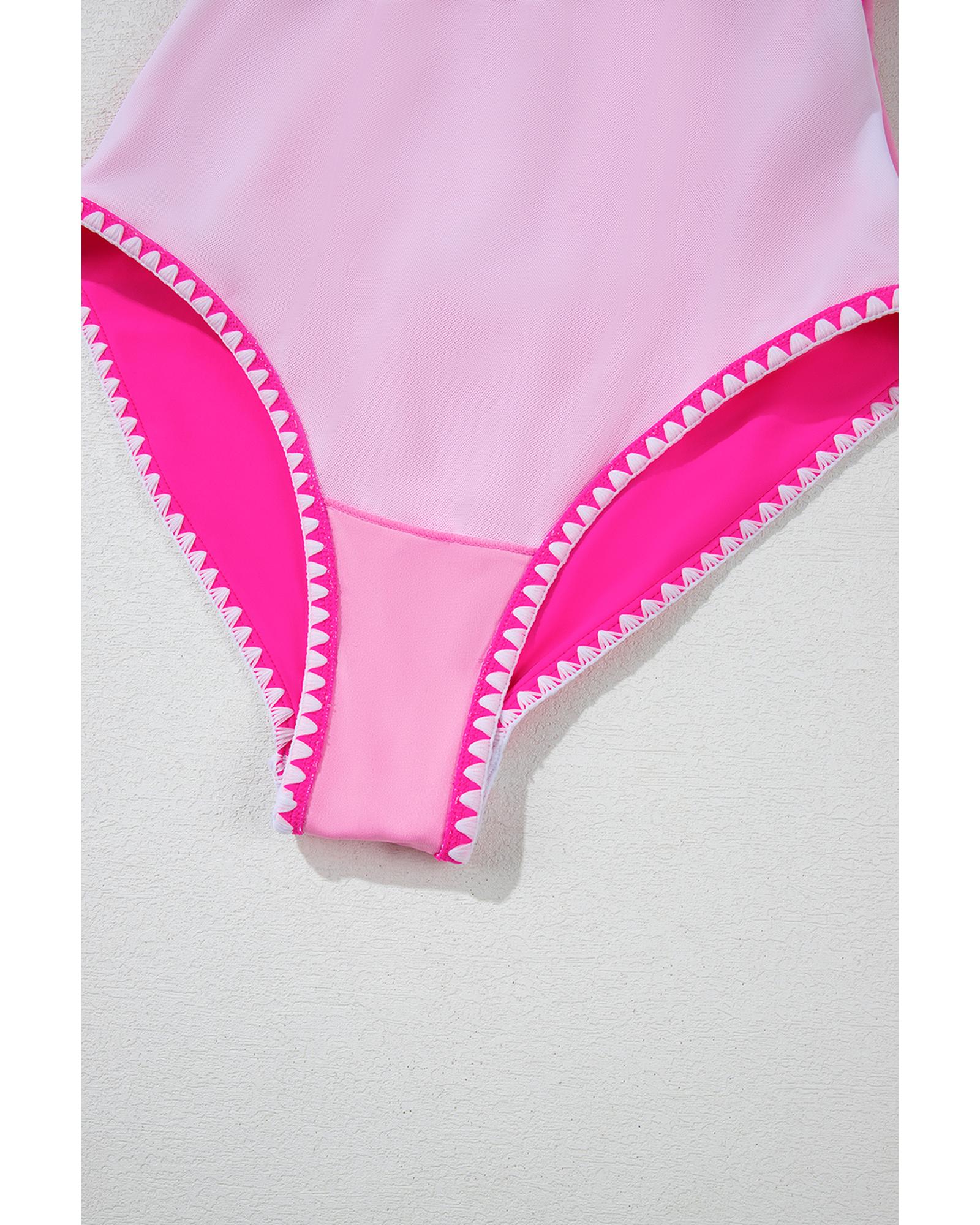 Rose Red Ric Rac Trim Contrasted Patchwork Cutout One Piece Swimsuit – XL