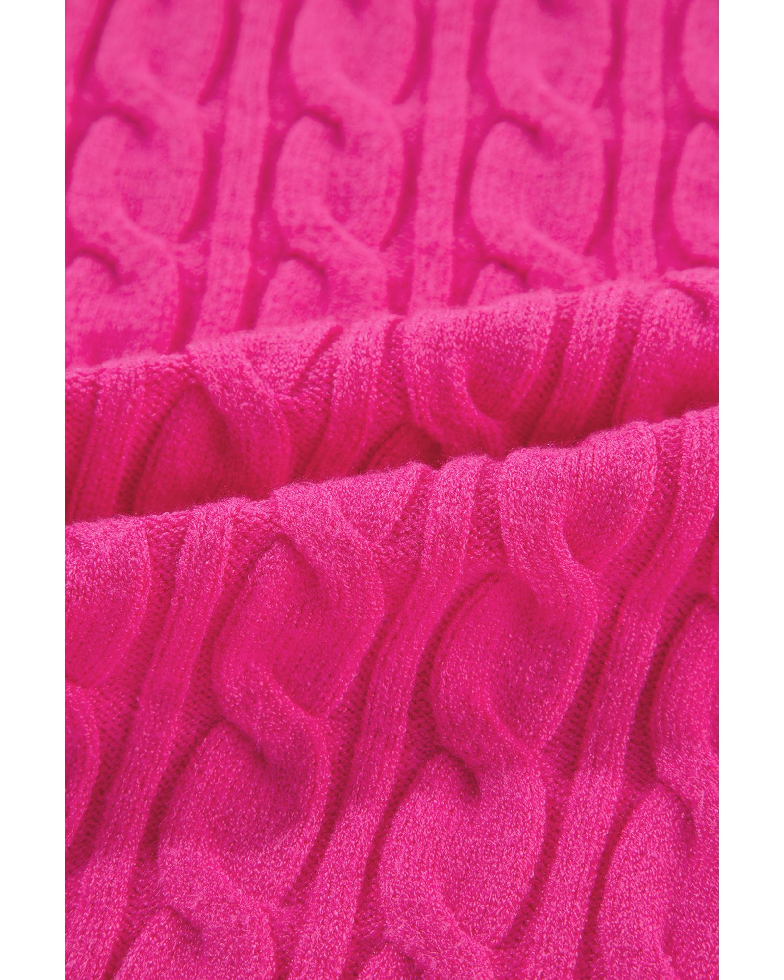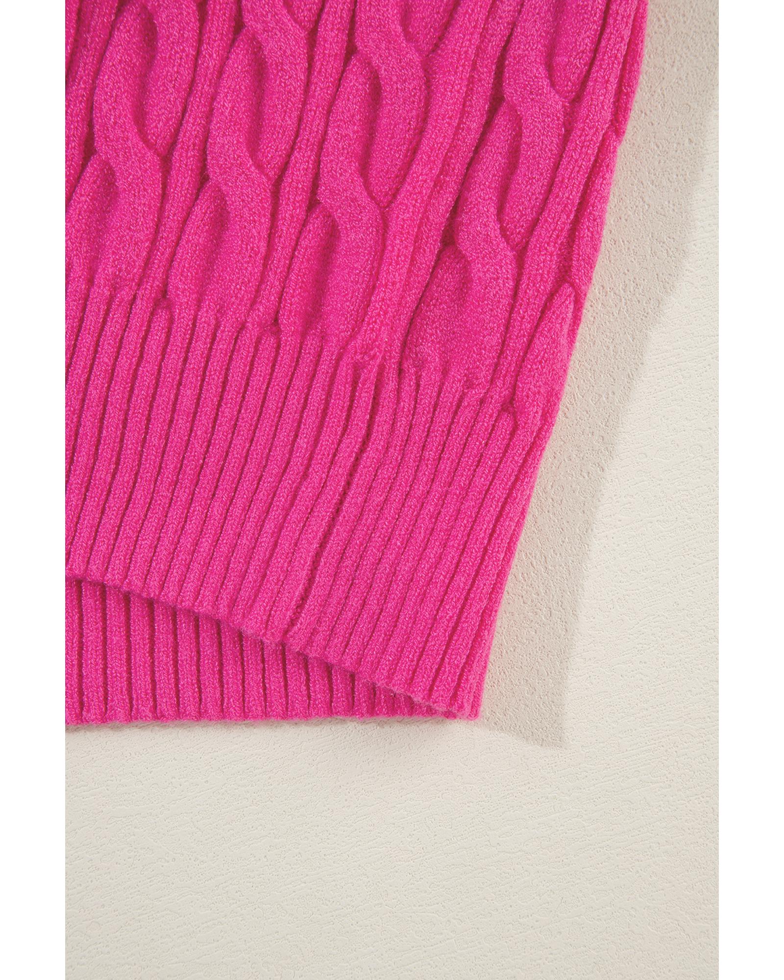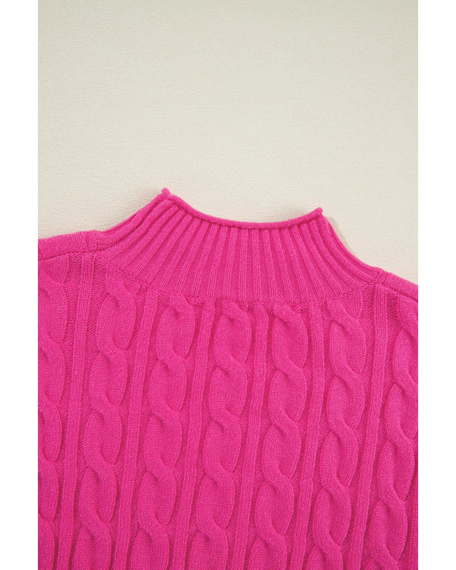 Rose Red Solid Cable Knit High Neck Drop Shoulder Sweater – L