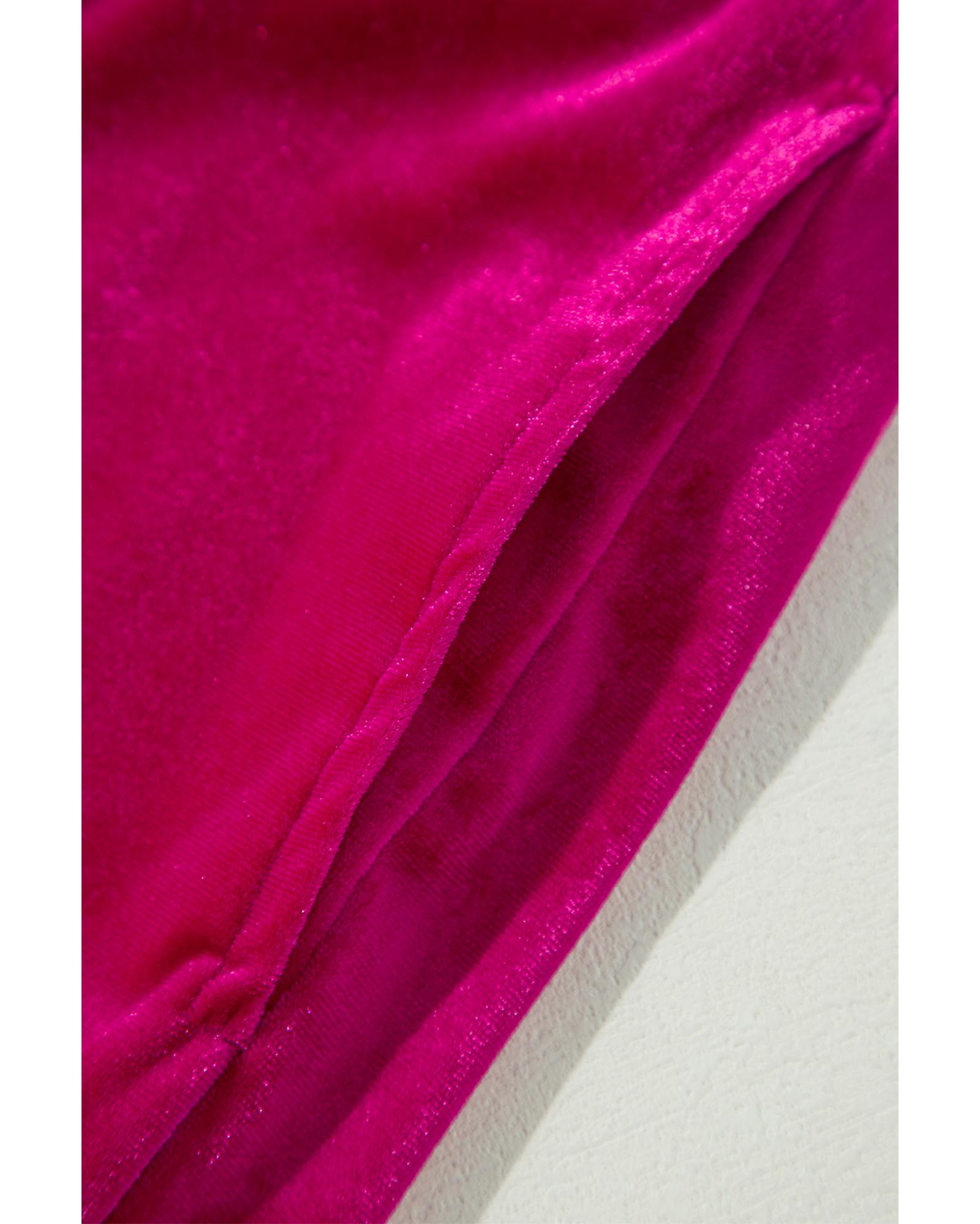 Rose Red Solid Velvet Ruffled Two Piece Pants Set – S