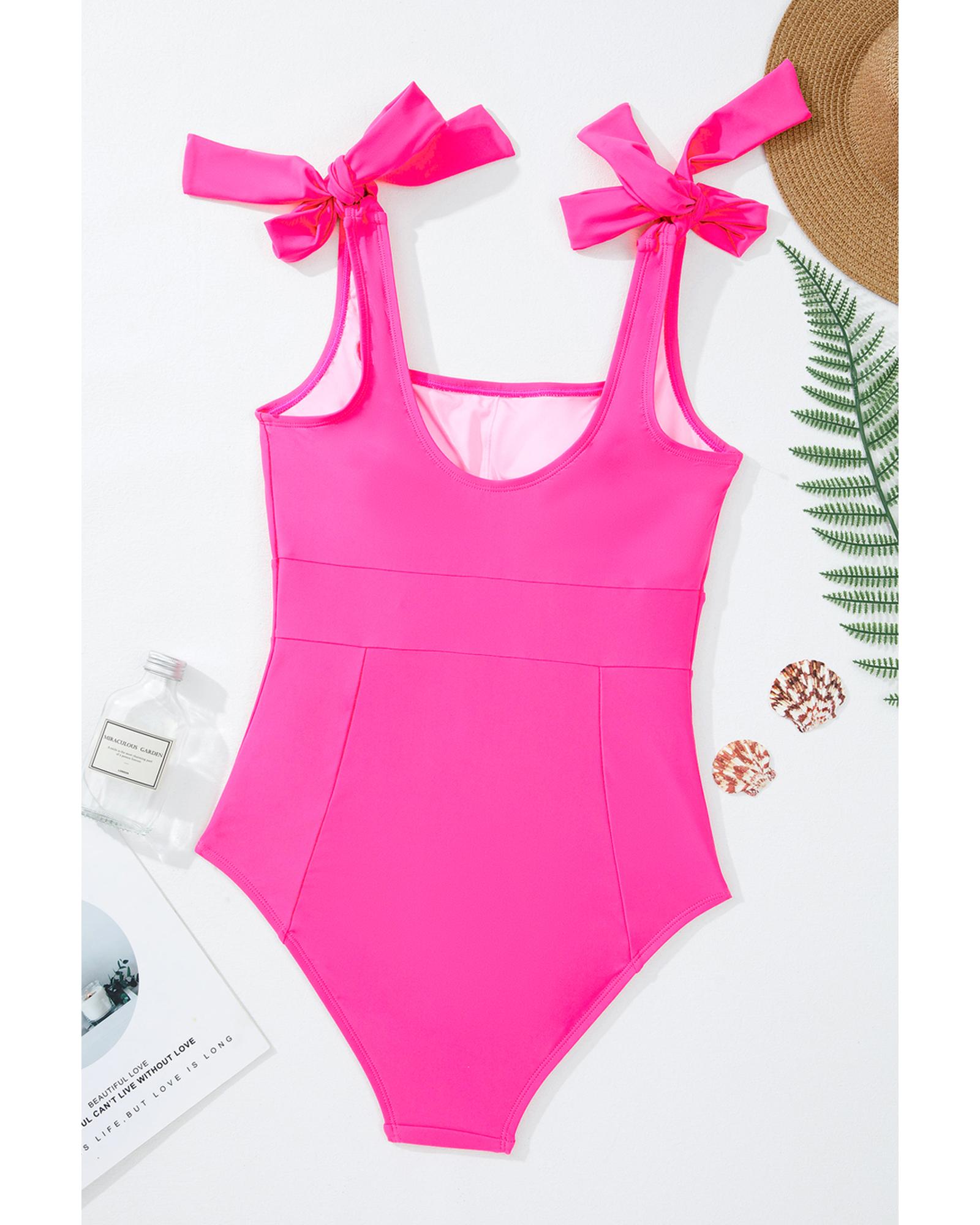 This rose red one-piece swimsuit features a stylish square neckline, knotted shoulder straps, and an open back design, creating a trendy and elegant look. Made from high elasticity fabric, it offers a comfortable fit suitable for various body types. The solid color adds a timeless appeal, making it a versatile choice for swimwear.