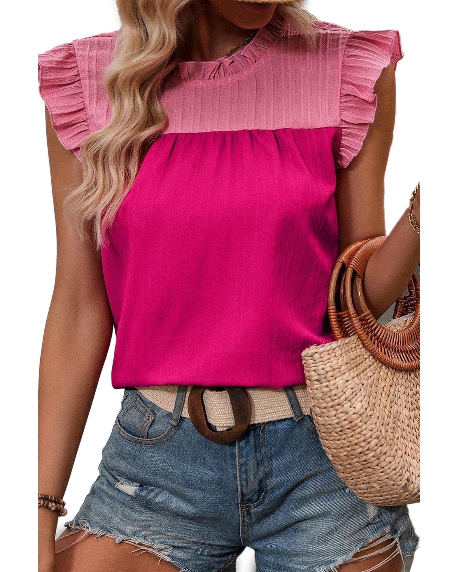 Rose Red Two Tone Ruffled Flutter Sleeve Blouse – XL