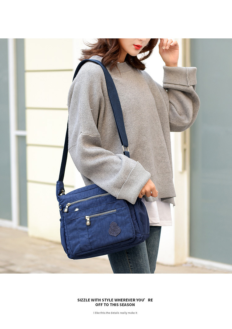 Dark Blue Versatile Womens Nylon Water-Repellent Crossbody Shoulder Bag Set with Matching Clutch Pouch - Lightweight & Multi-Pocket