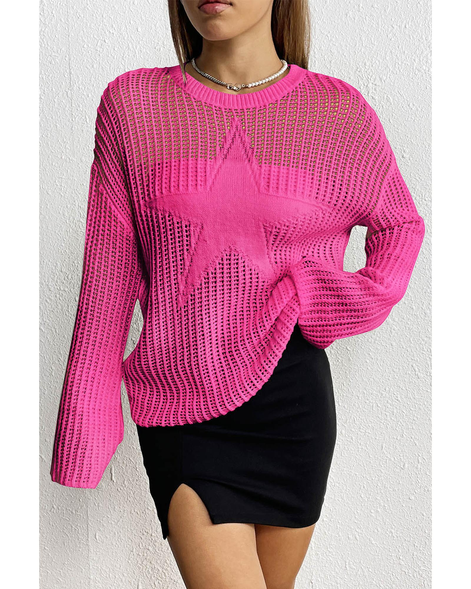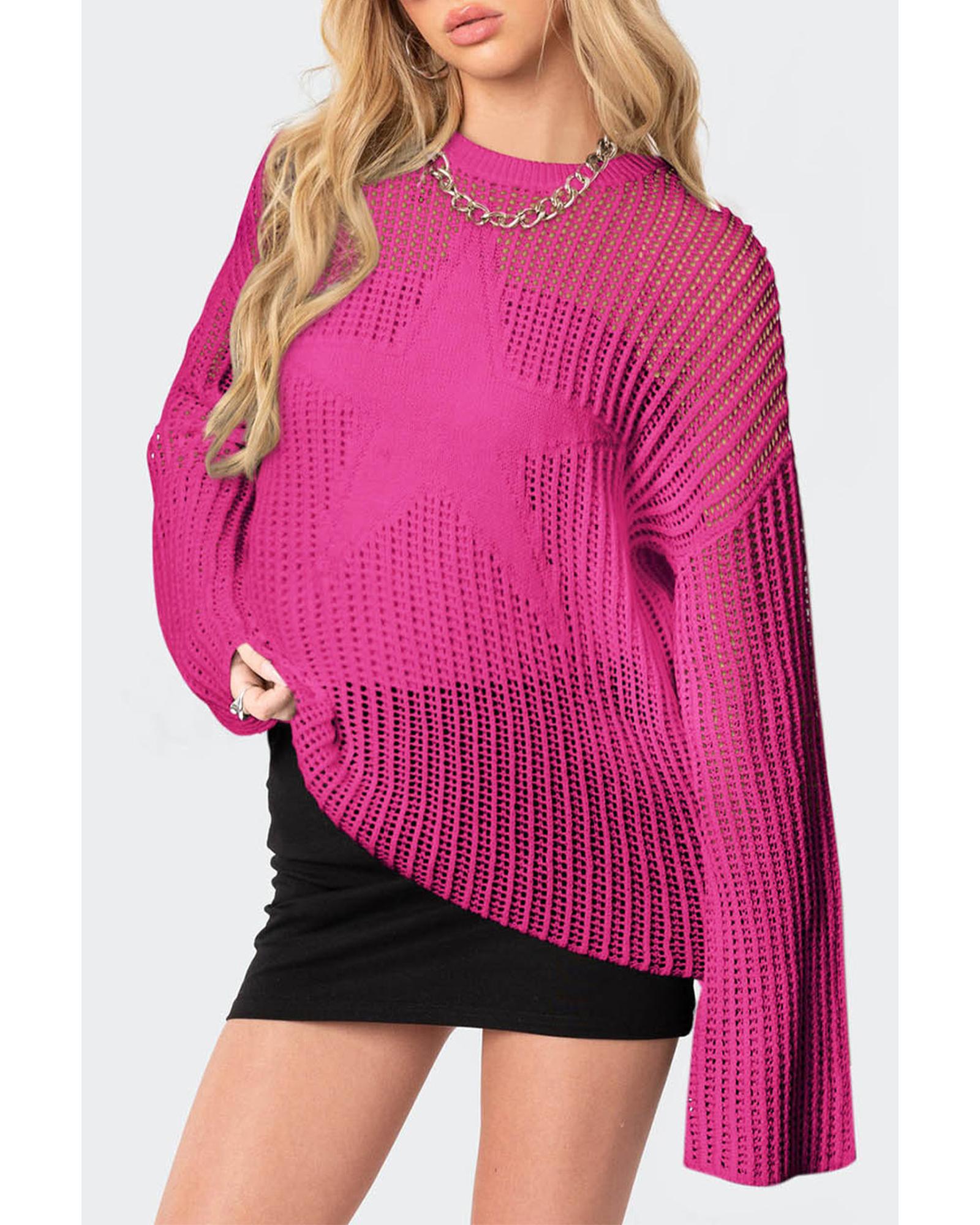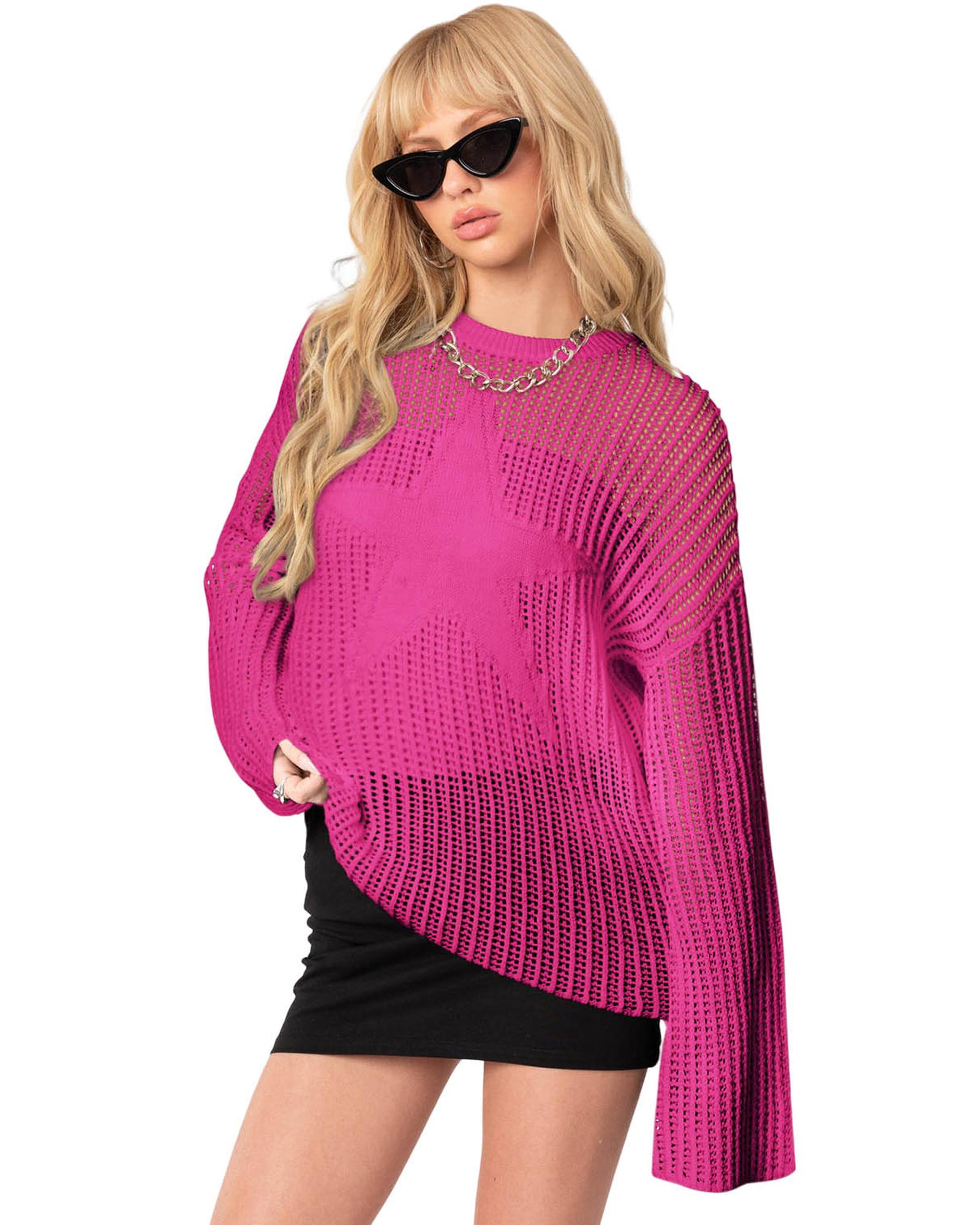 This oversized sweater features a trendy and stylish design with a unique eyelet pattern and large star motifs. Its timeless solid color makes it versatile for various outfits, adding a modern touch to your daily wardrobe. The sweater is made from high-quality acrylic material, ensuring comfort and durability.