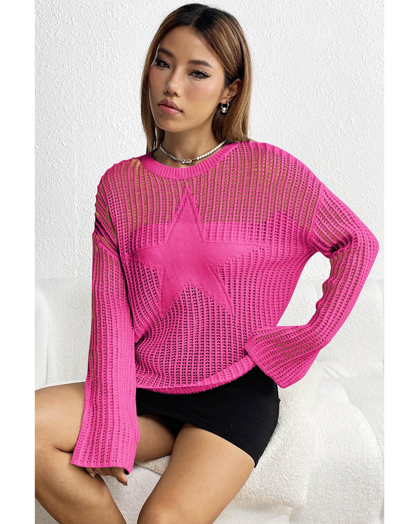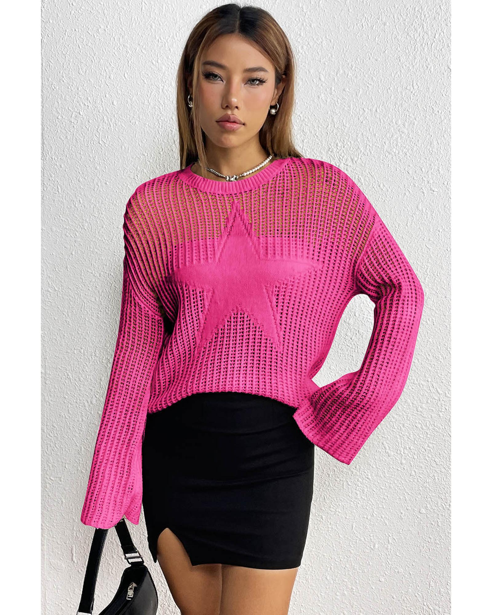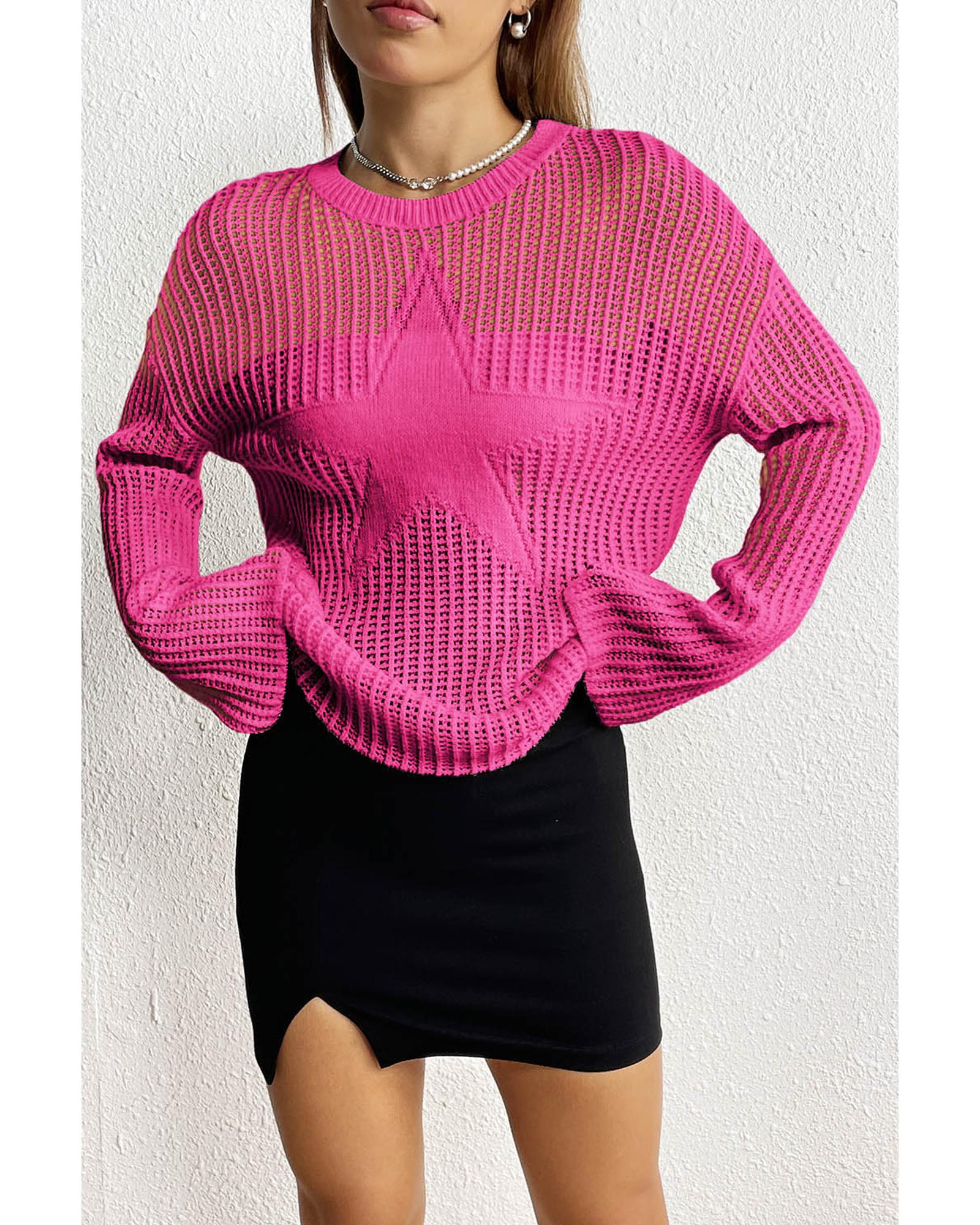 This oversized sweater features a trendy and stylish design with a unique eyelet pattern and large star motifs. Its timeless solid color makes it versatile for various outfits, adding a modern touch to your daily wardrobe. The sweater is made from high-quality acrylic material, ensuring comfort and durability.
