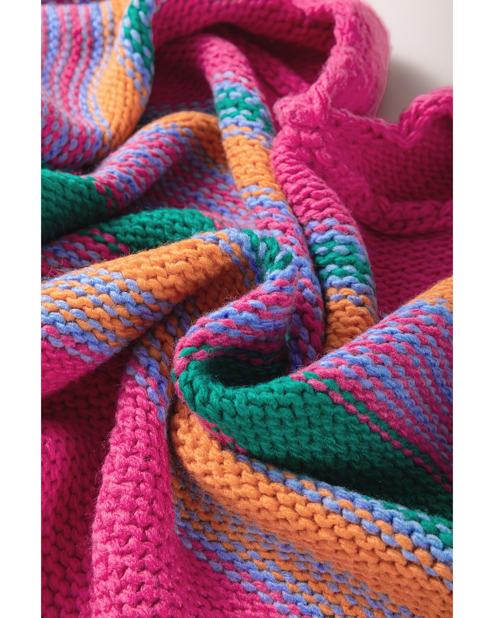 This colorful puff sleeve cardigan features a vibrant rose stripe pattern and a relaxed, loose fit. Designed with a trendy and modern aesthetic, it is perfect for layering and adding a touch of style to any outfit.