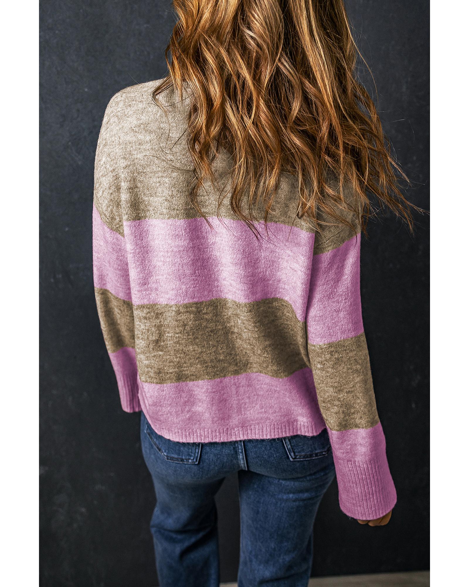 This sweater features a stylish colorblock design with rose stripes, combining elegance and comfort. It is crafted with high-quality materials to ensure durability and long-lasting wear. The crew neck and wide sleeves provide a relaxed fit suitable for various occasions.