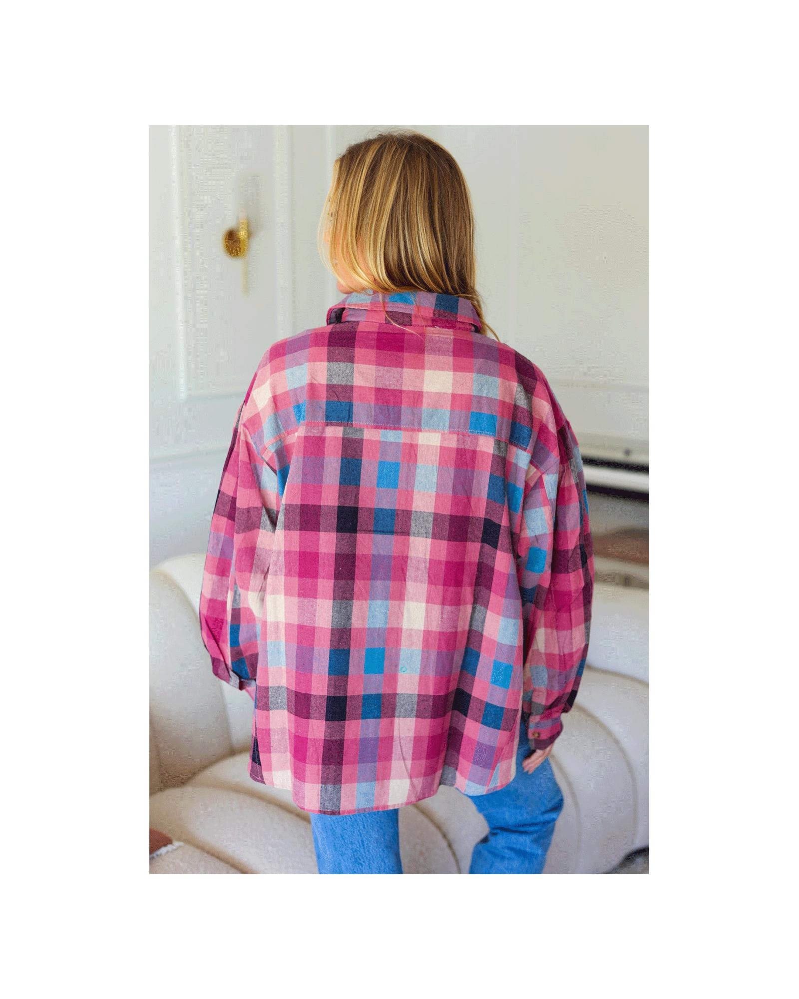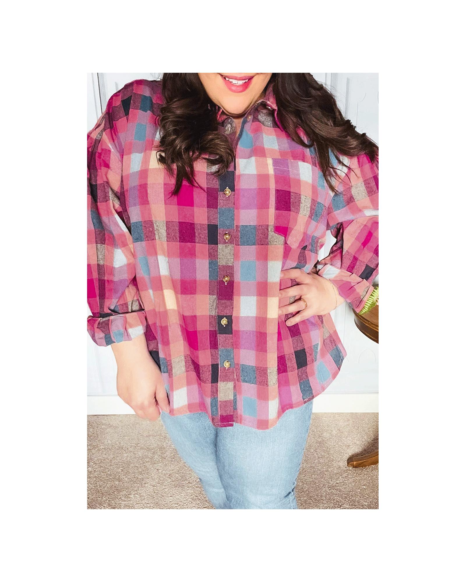 Rose Stripe Plus Size Checkered Print Button up Shirt – 1X