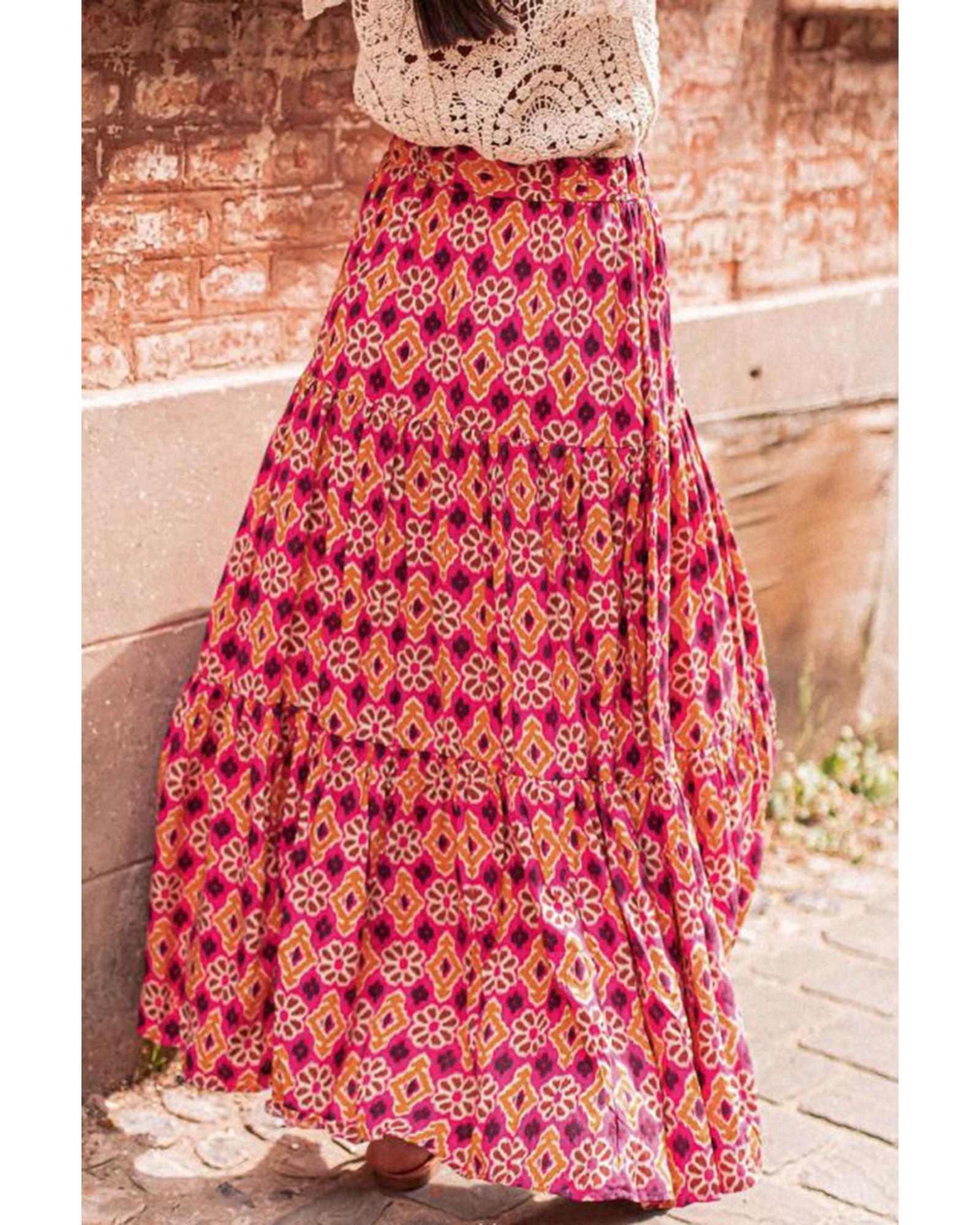 This vintage boho floral print tiered maxi skirt offers a stylish and comfortable option for various occasions. Designed with a trendy fitted look, it features a high waist and tiered design that adds to its fashionable appeal. The skirt is versatile and pairs well with different tops, making it a great addition to any wardrobe.