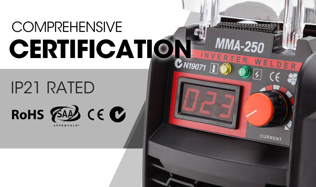 This portable arc inverter welding machine offers a powerful 250Amp output while maintaining a lightweight and compact design. It features advanced inverter technology for reliable performance, smooth weld finishes, and deep penetration, making it suitable for various welding tasks at home or on the job site.