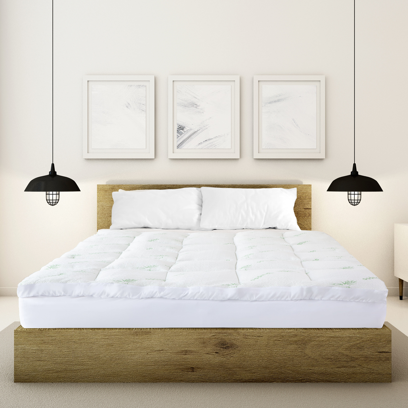 This luxury mattress topper provides a soft and comfortable sleeping surface, enhancing your sleep experience by adding extra support and cushioning. It is designed to help maintain a comfortable temperature throughout the night, making it suitable for year-round use. The topper is made from natural bamboo material, which is moisture-wicking and thermoregulating, ensuring breathability and temperature control. Its dense, plush feel offers a luxurious layer between your mattress and sheets, promoting restful sleep.