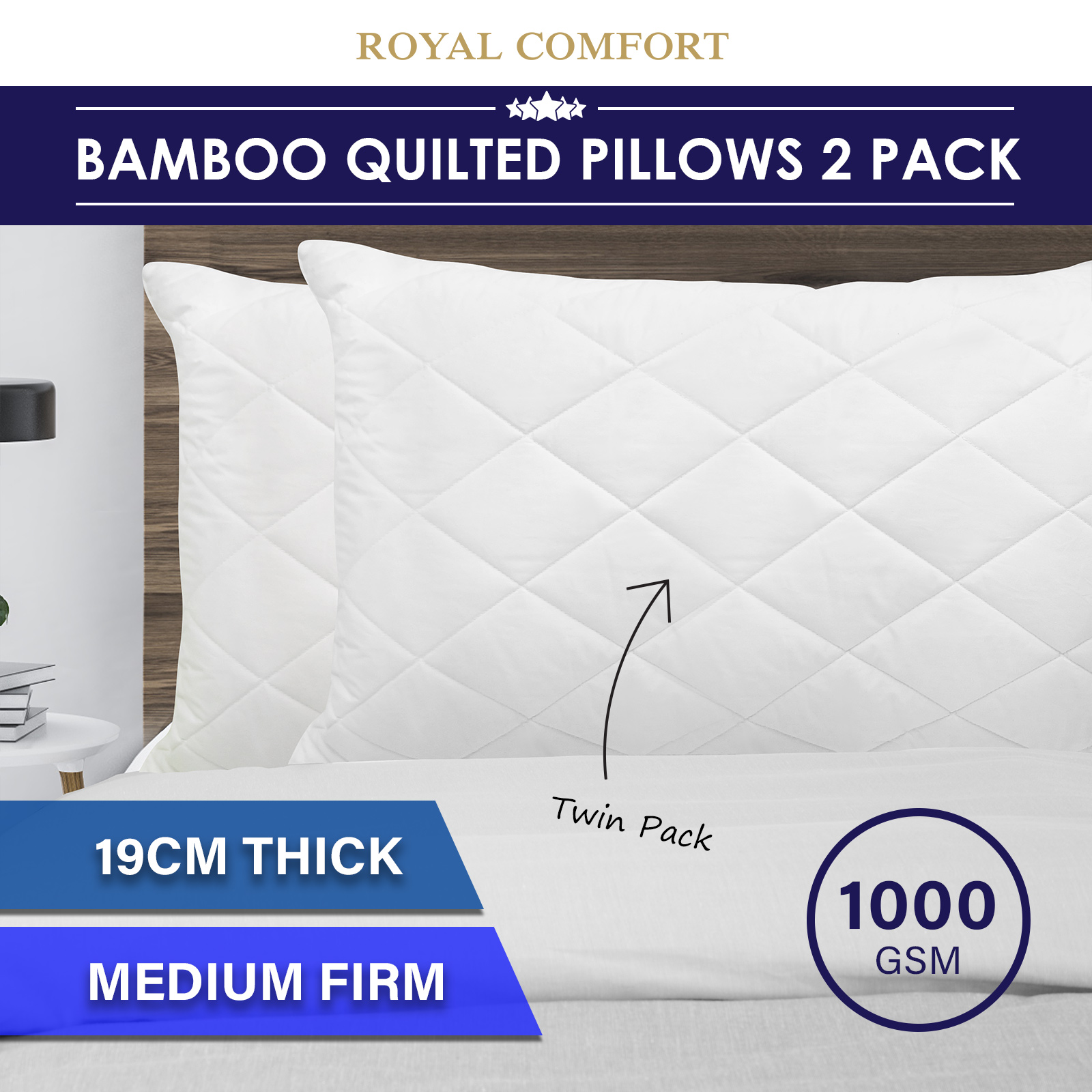 Royal Comfort Luxury Bamboo Blend Quilted Pillow Twin Pack Extra Fill Support