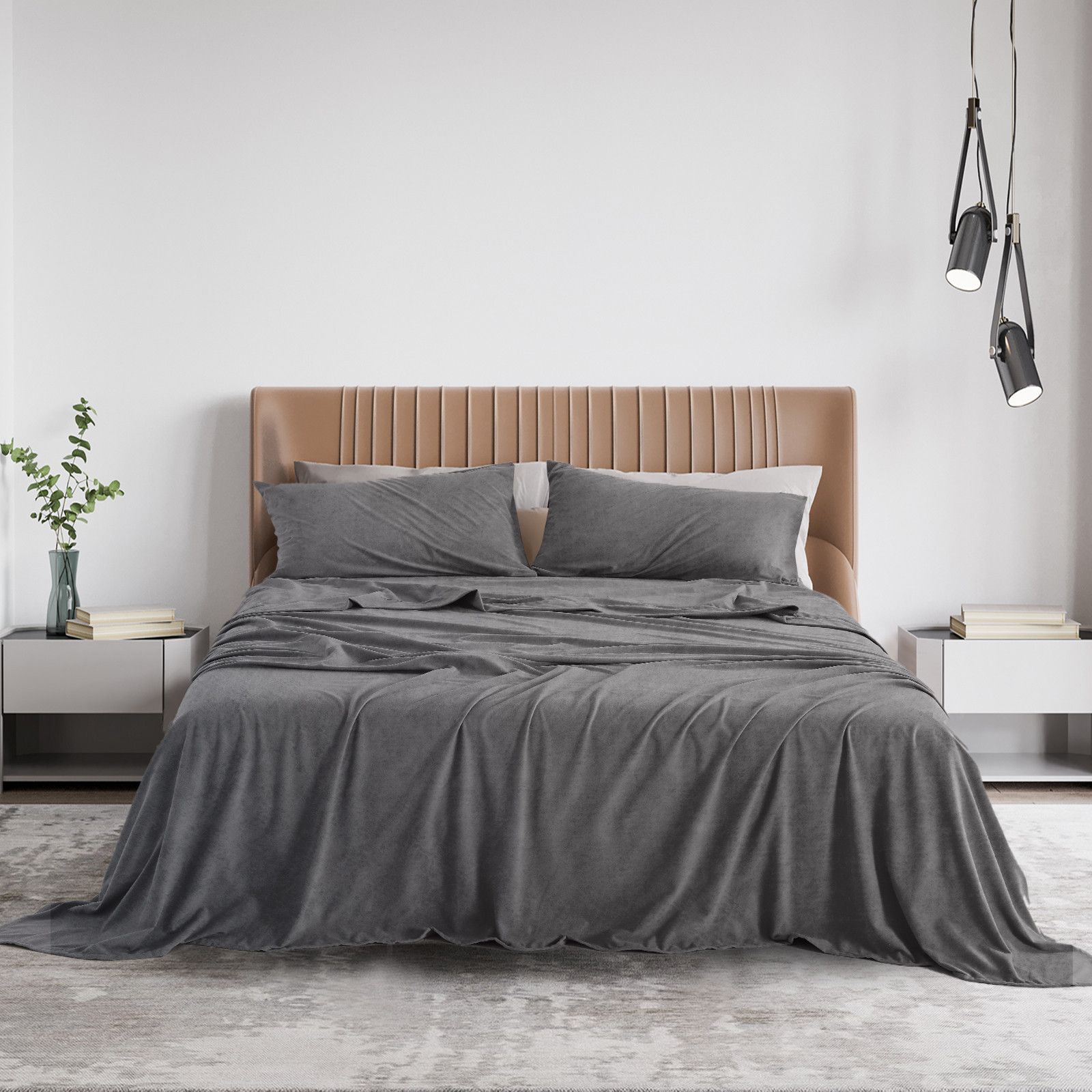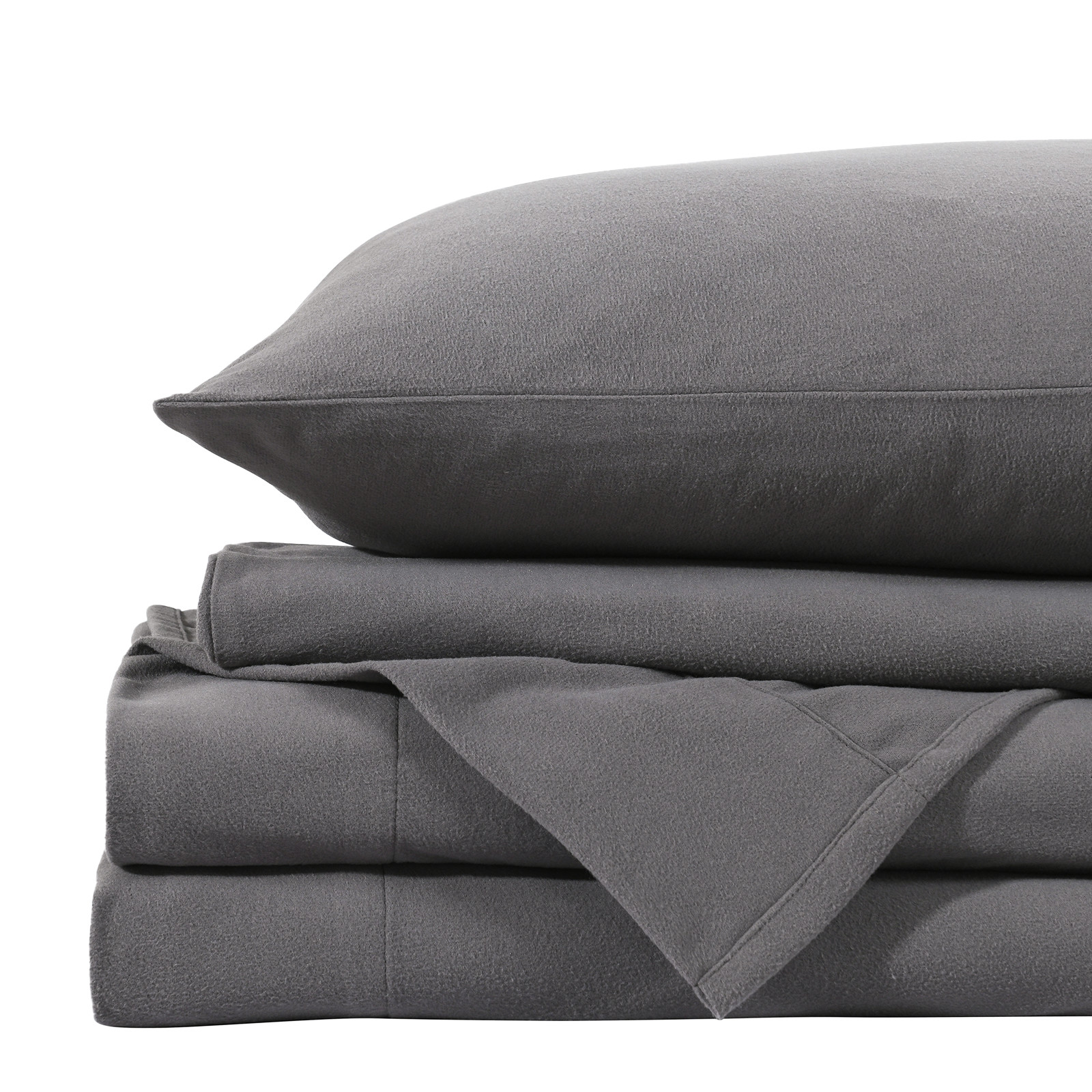 Royal Comfort Polar Fleece Flannel Sheet Set Ultra Soft Plush Cozy – Single – Charcoal
