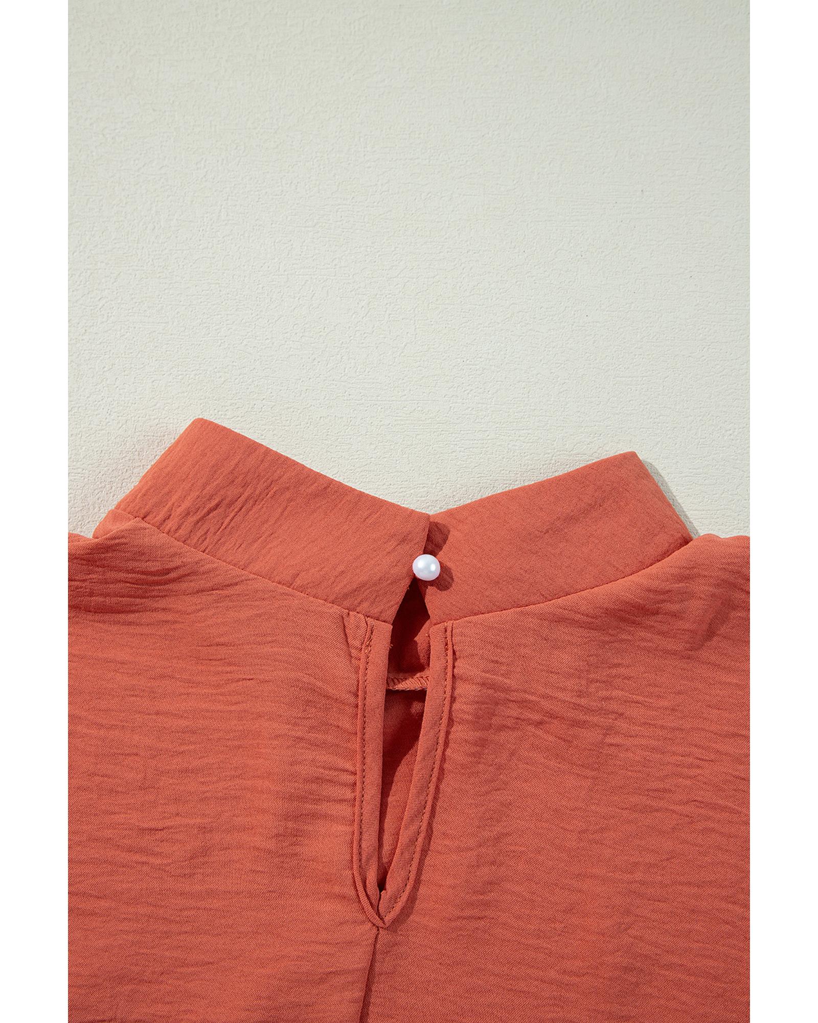 Russet Orange Swiss Dot Balloon Sleeve Loose Blouse – L