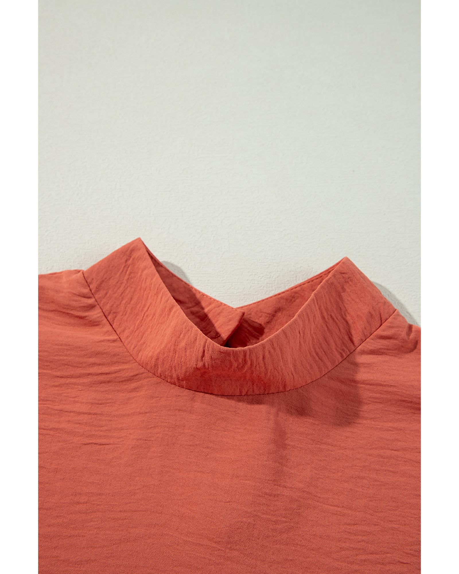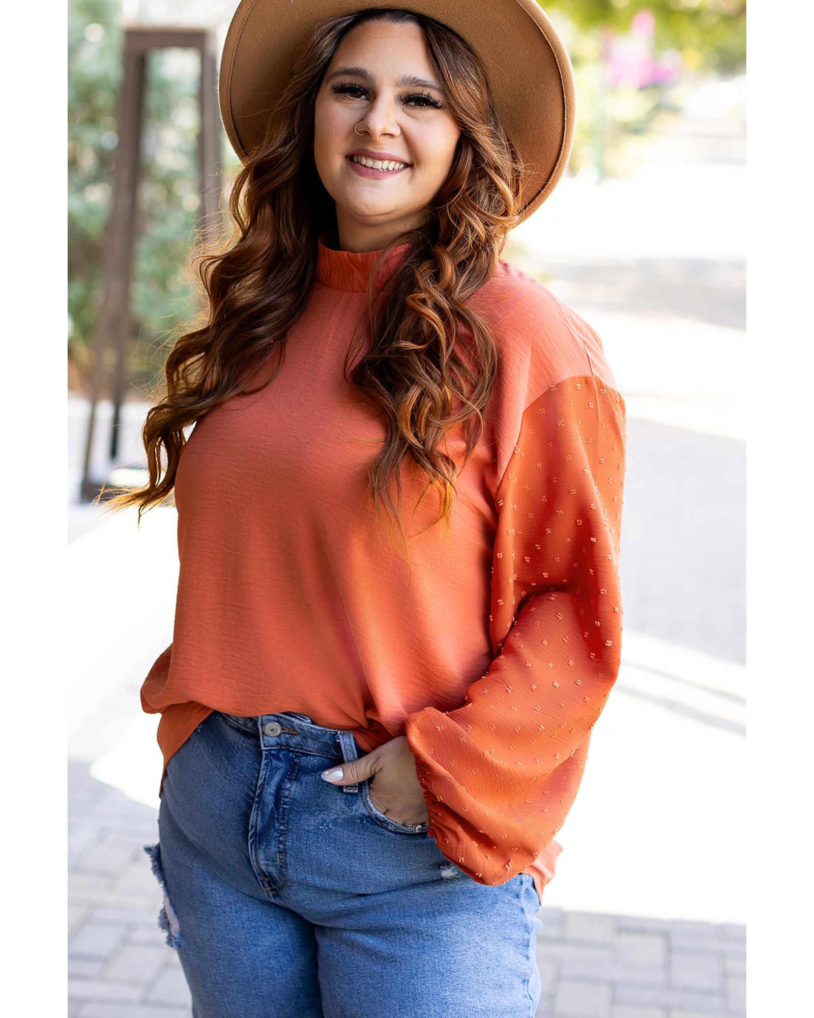 Russet Orange Swiss Dot Balloon Sleeve Loose Blouse – M