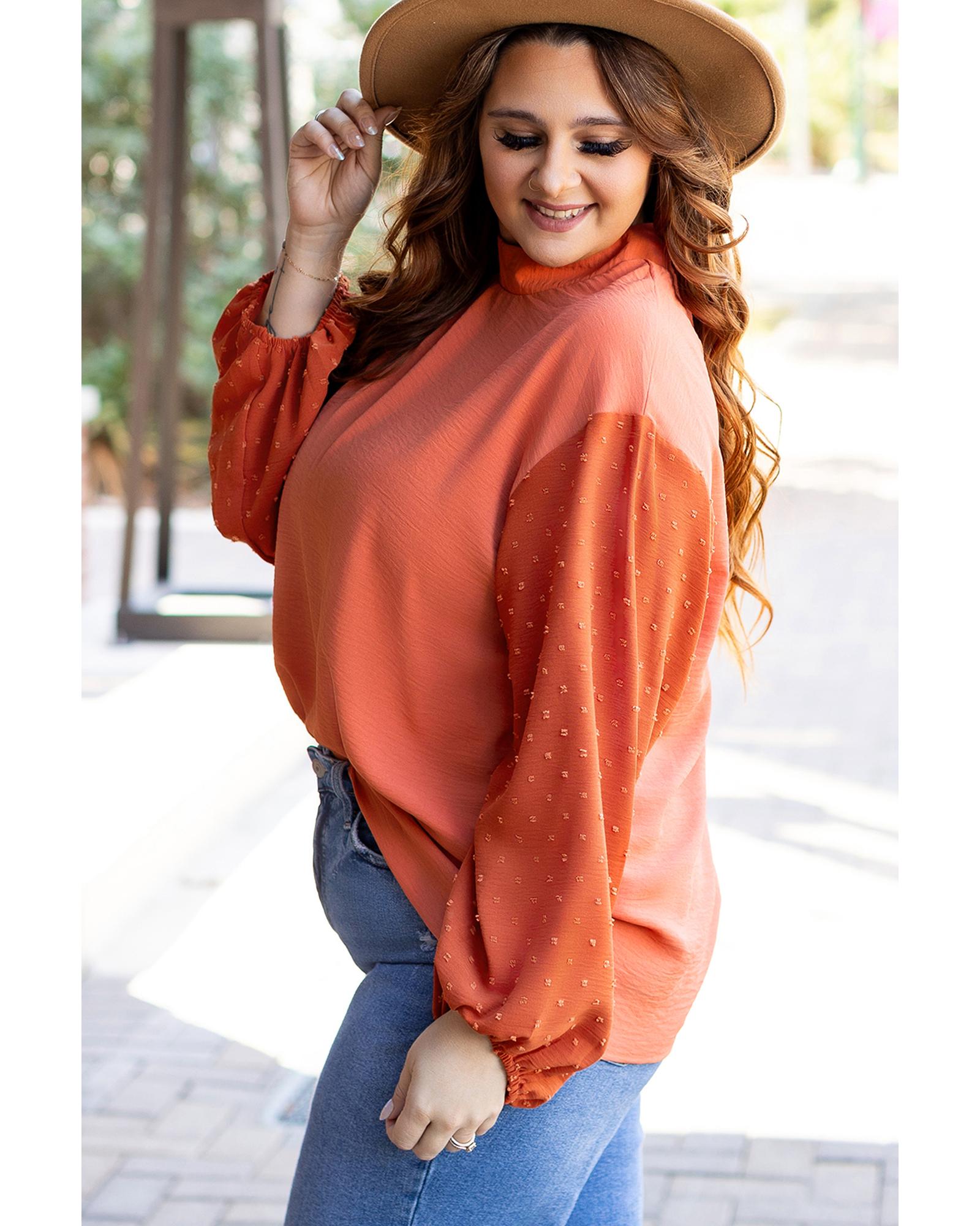 Russet Orange Swiss Dot Balloon Sleeve Loose Blouse – S
