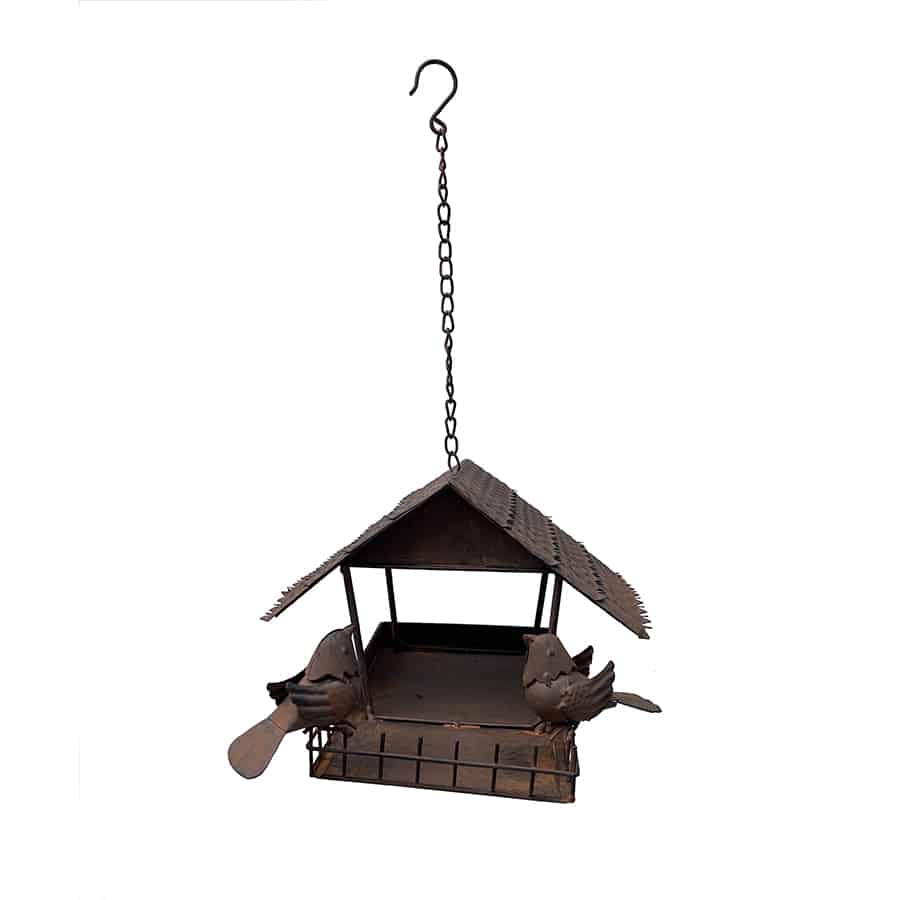 Rust Hanging Birdhouse w 2 Birds 42cm