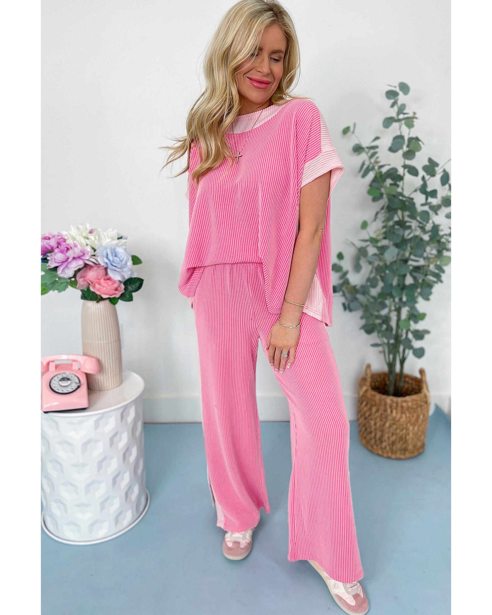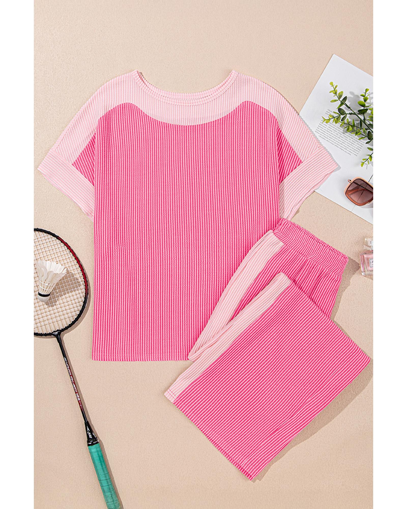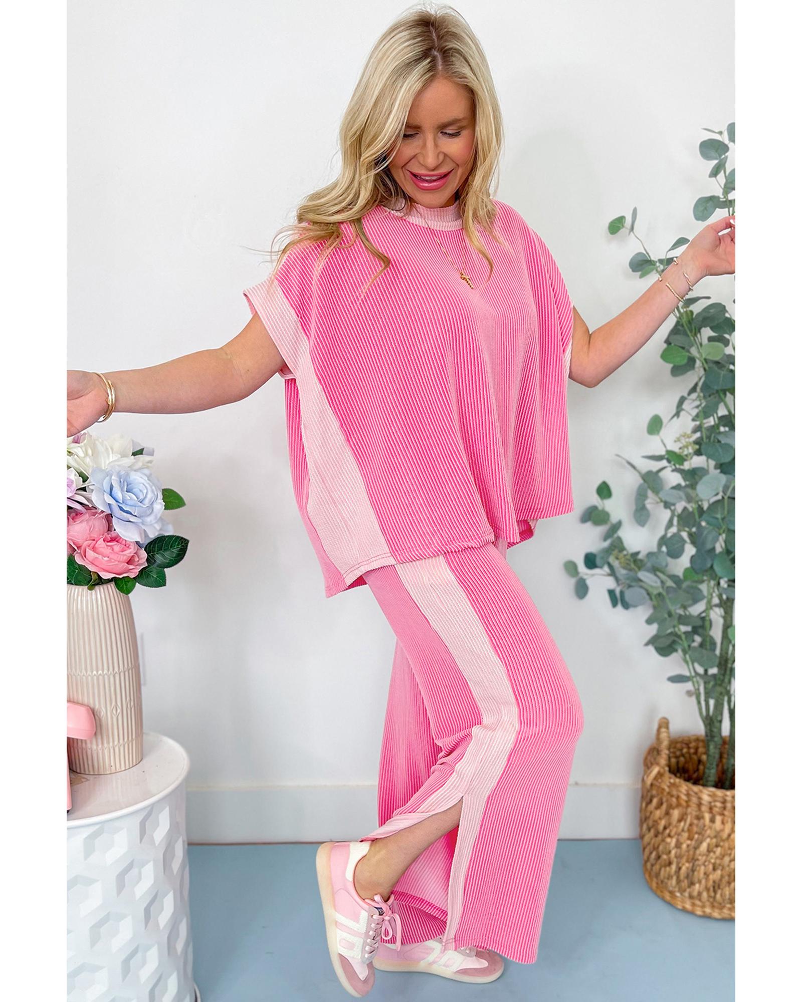 Sachet Pink 2-tone Colorblock Patchwork Corded 2pcs Outfit – M