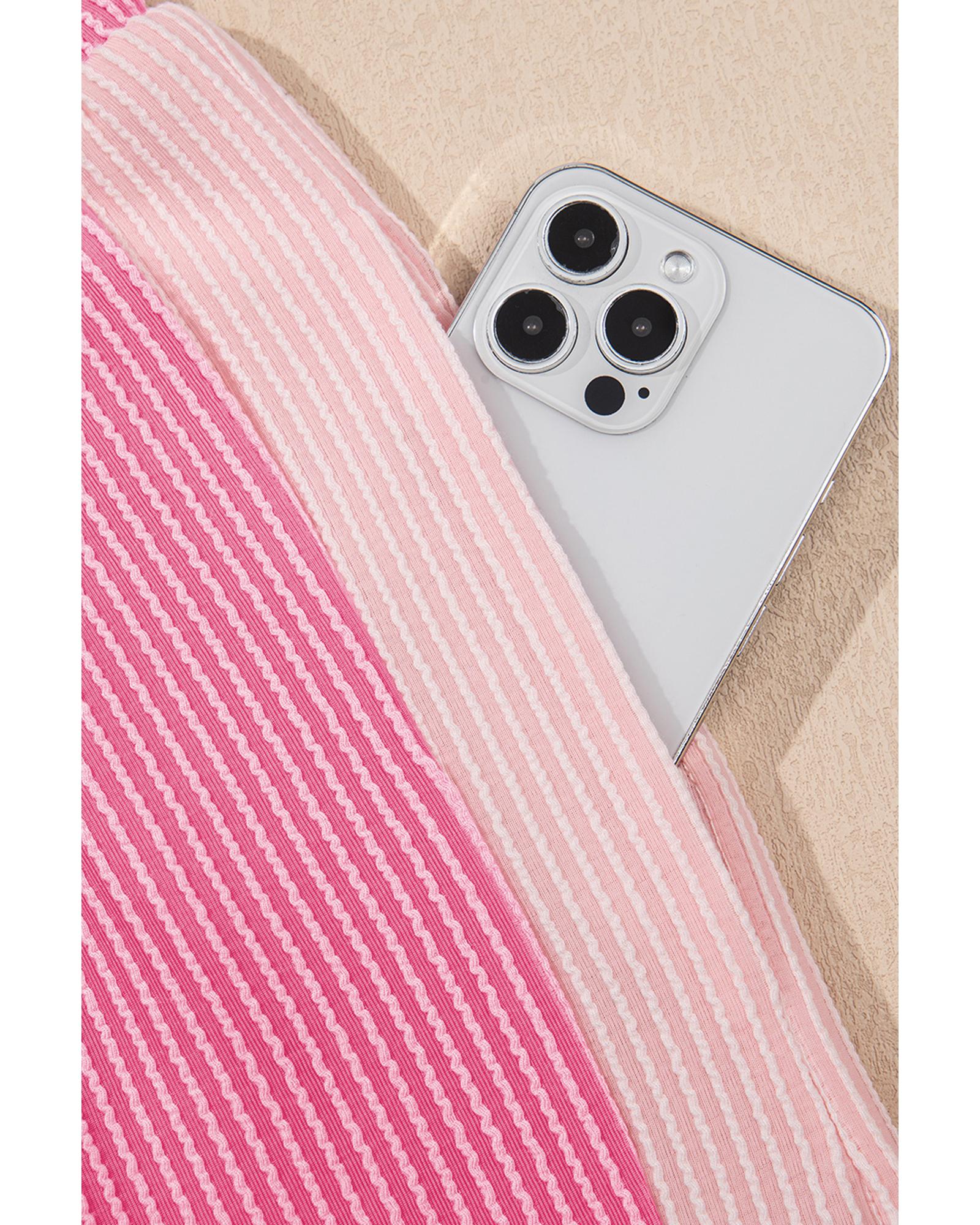 Sachet Pink 2-tone Colorblock Patchwork Corded 2pcs Outfit – S