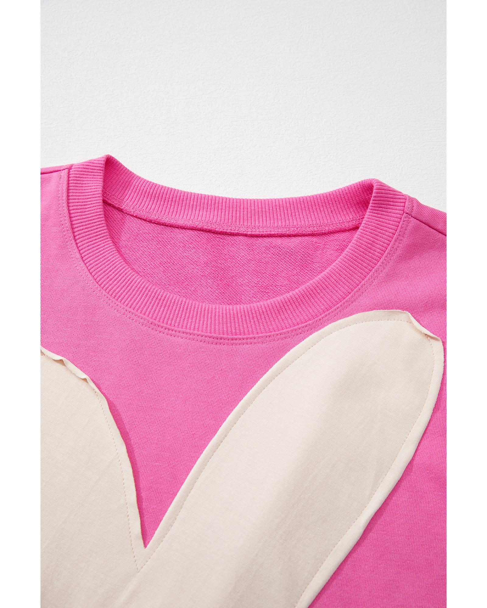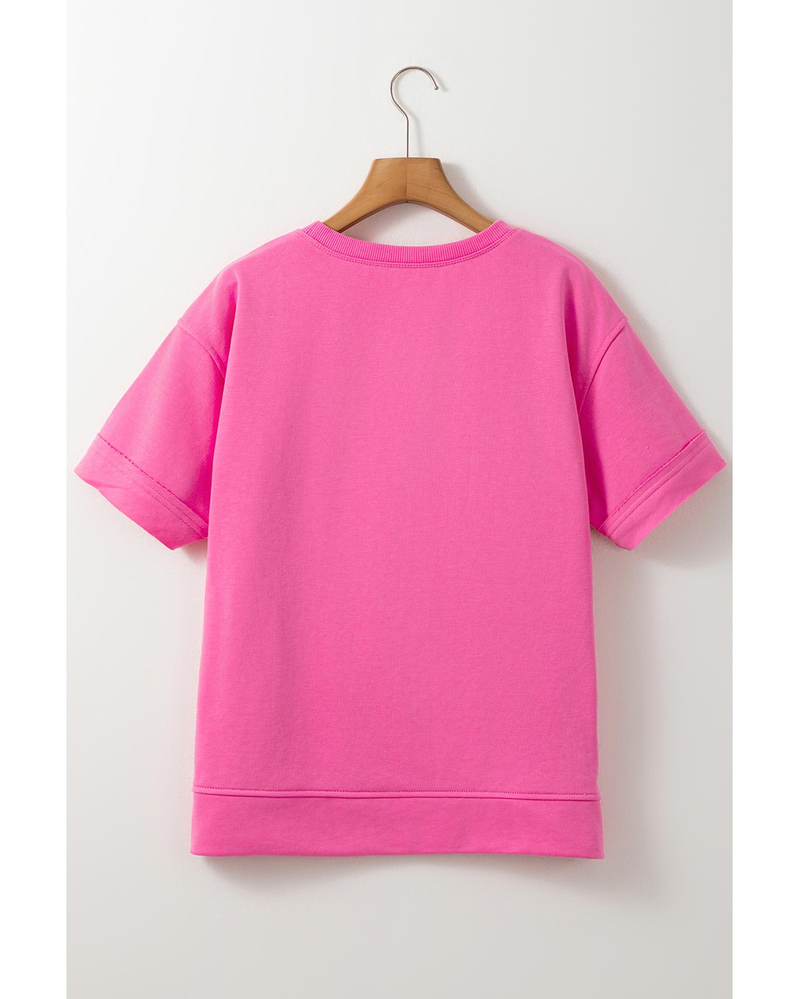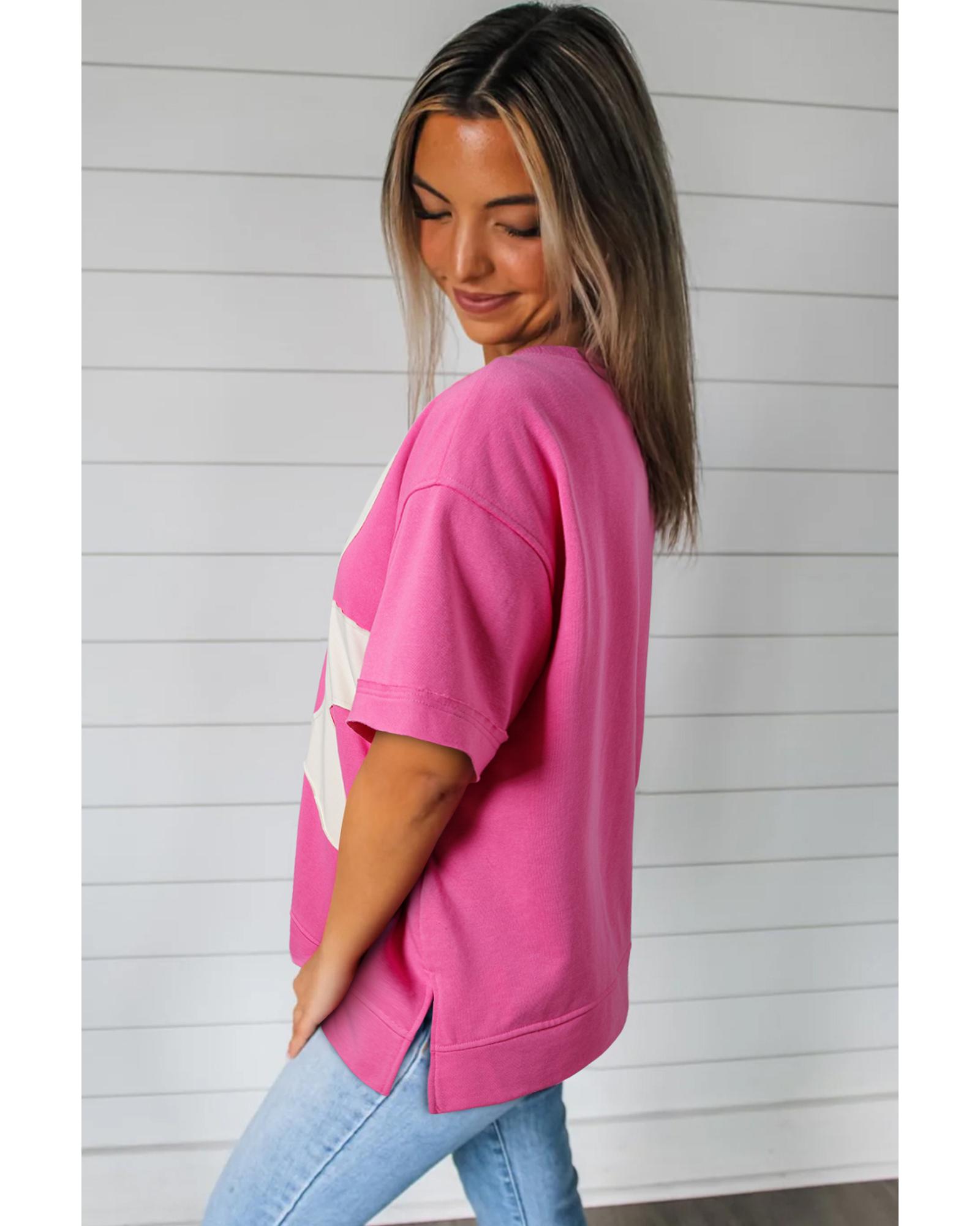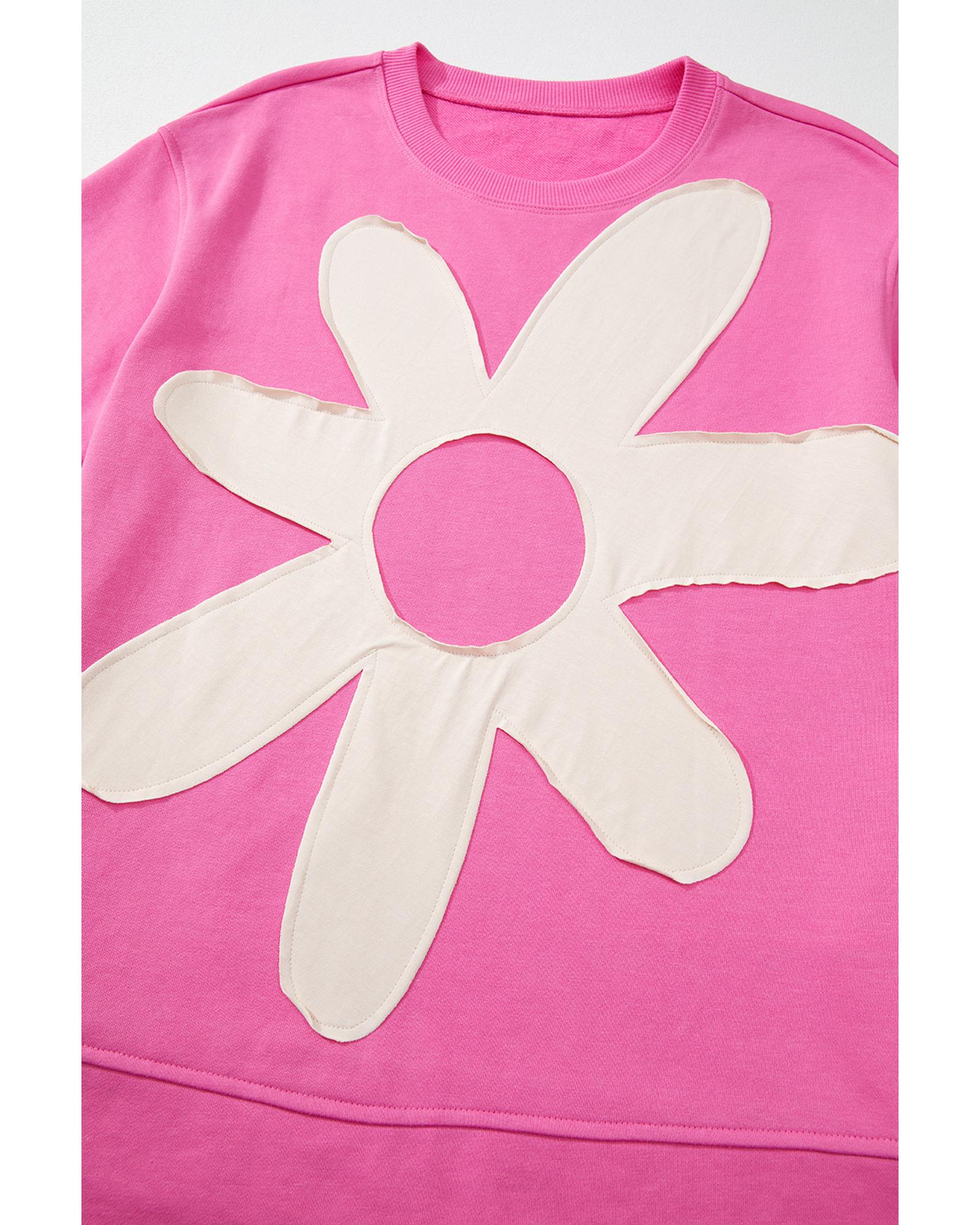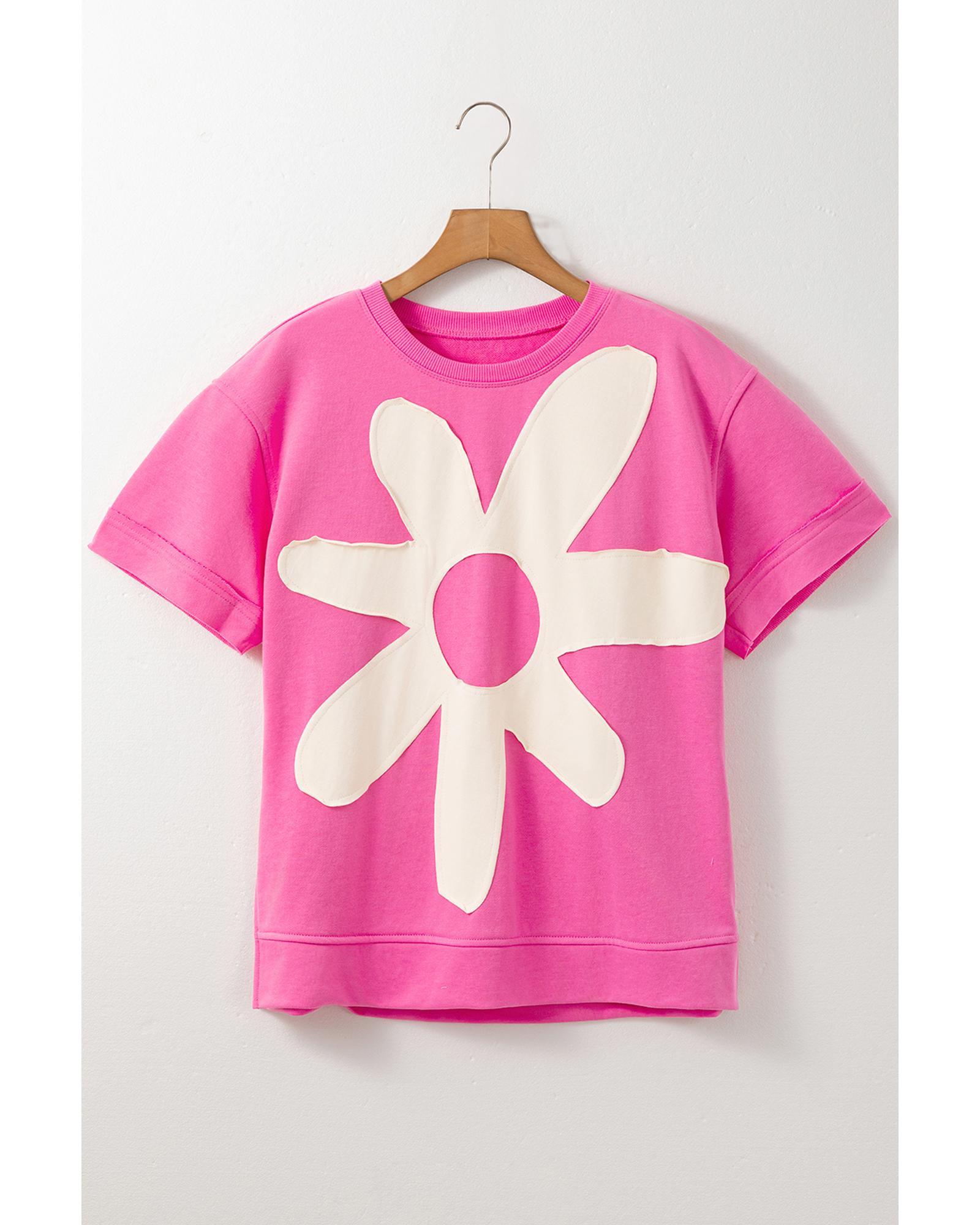 Sachet Pink Contrast Flower Drop Shoulder Loose T Shirt – M