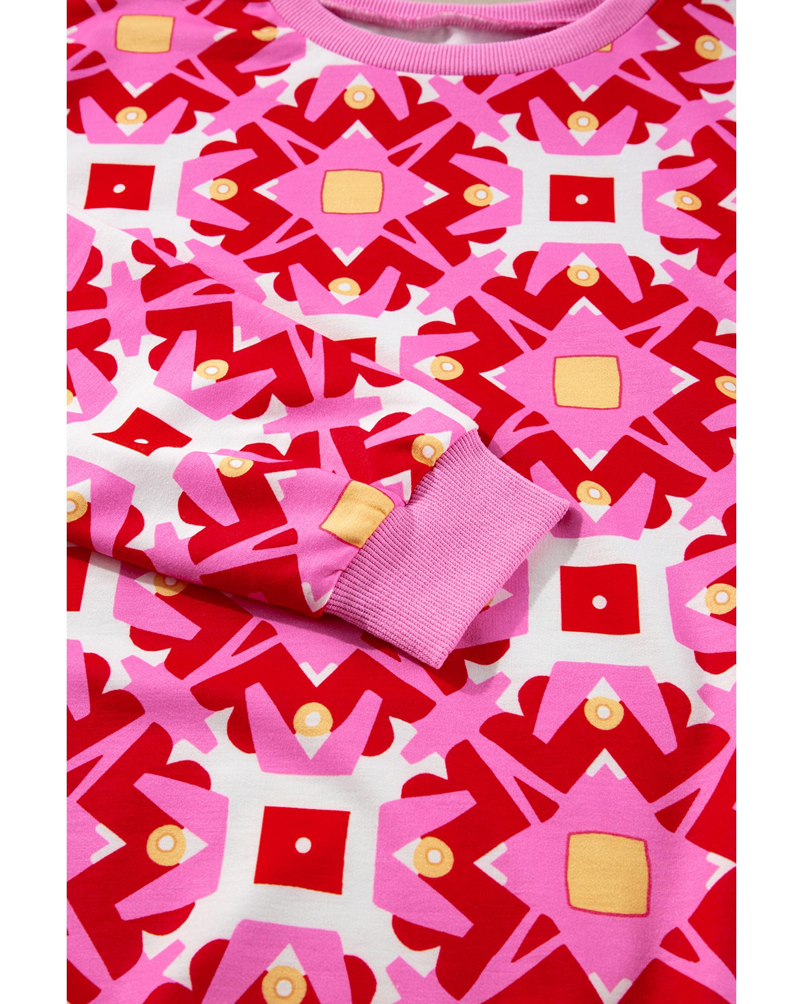 Sachet Pink Geometric Print Long Sleeve Top and Drawstring Shorts Set – M