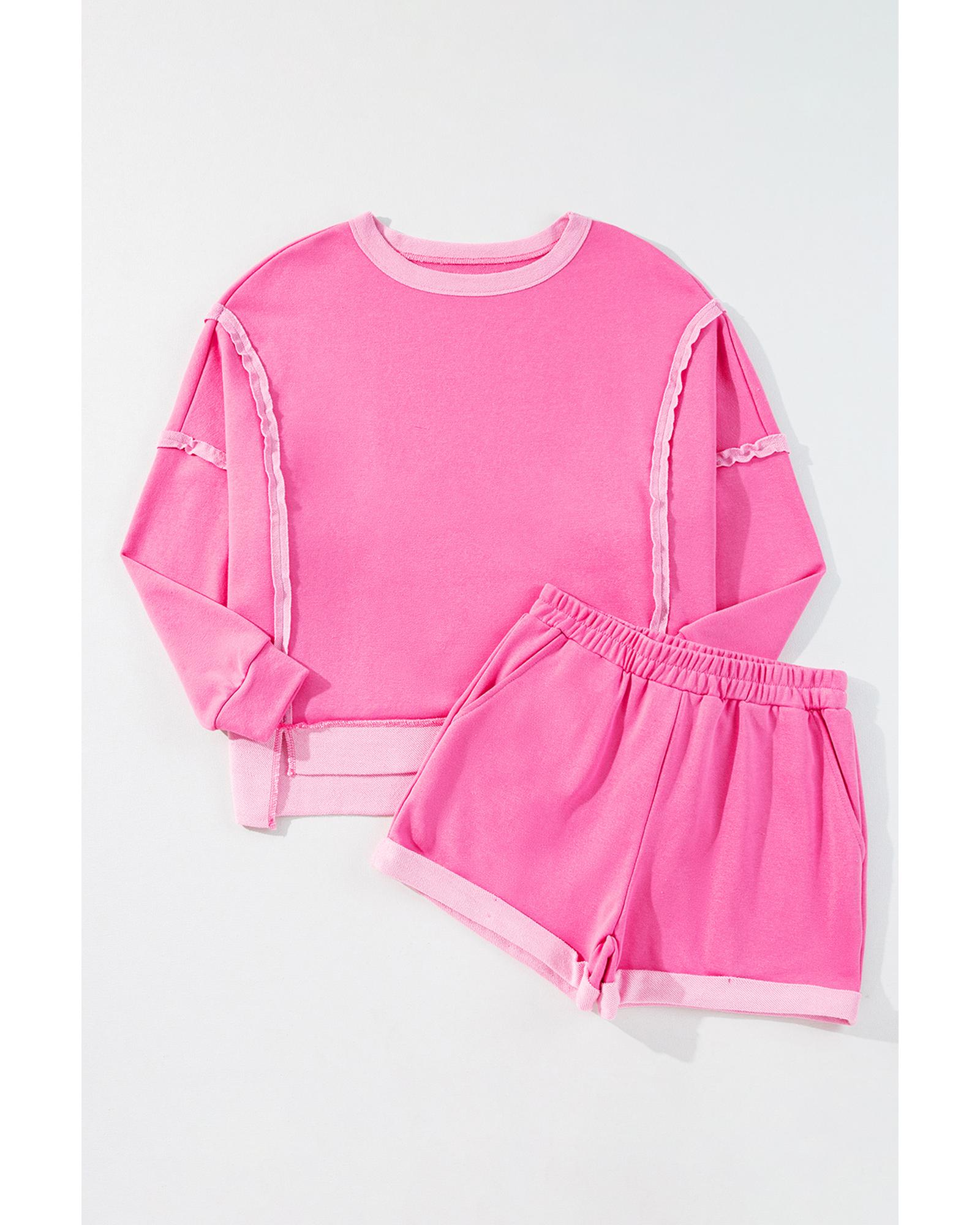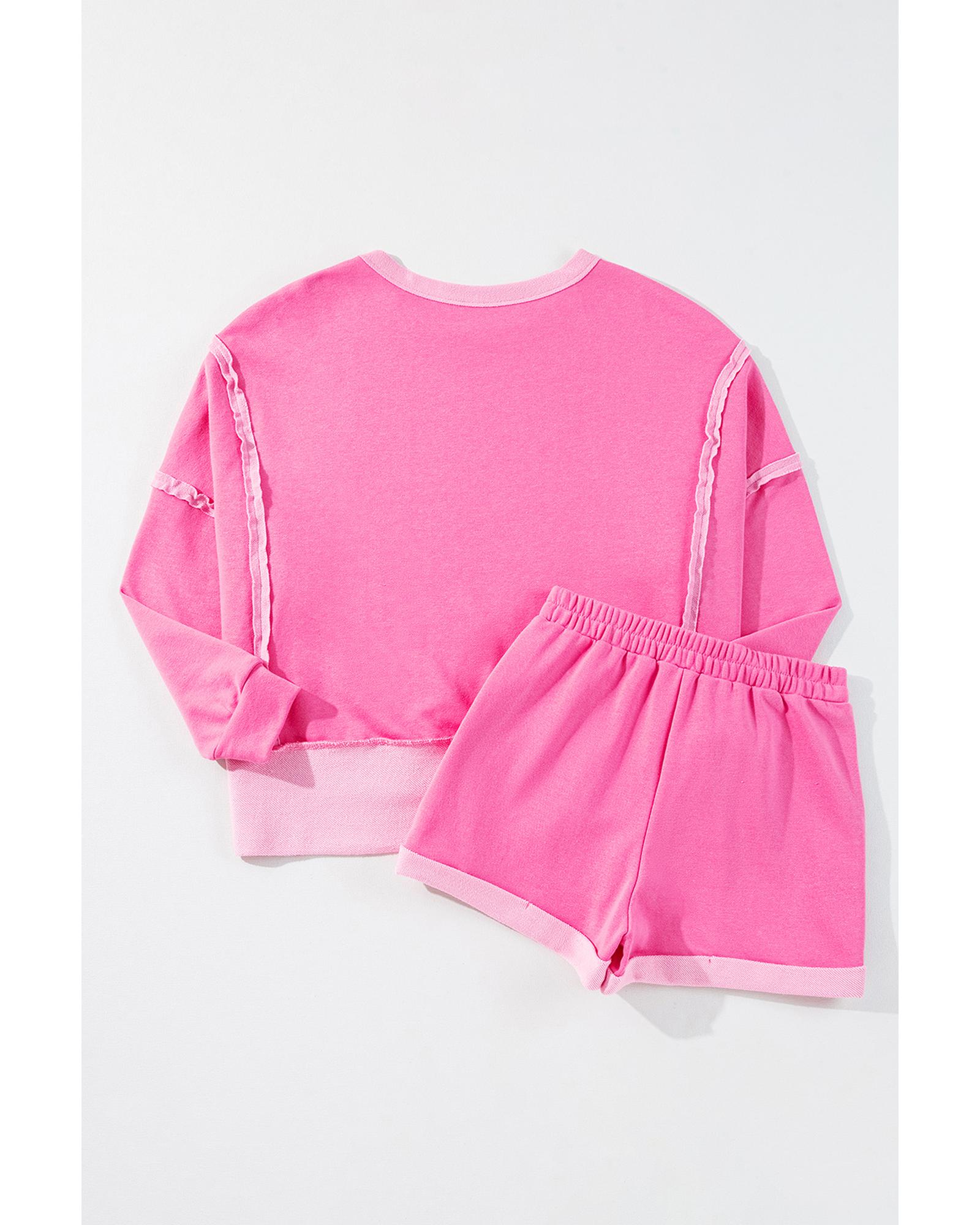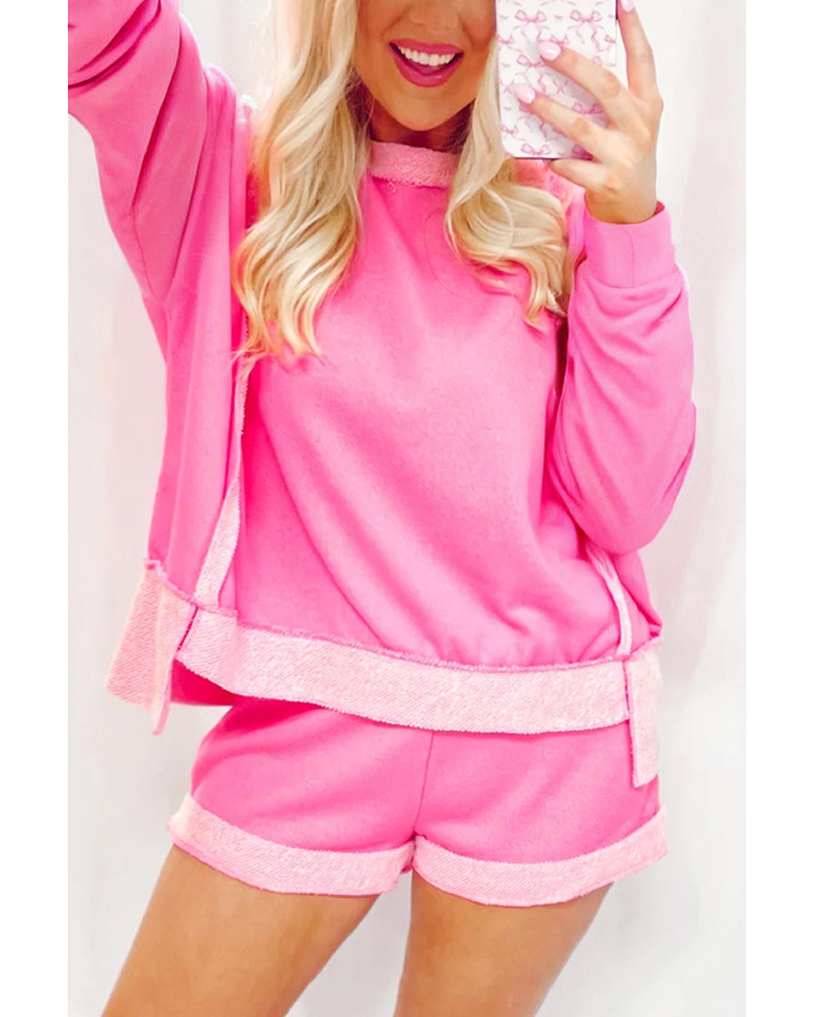 Sachet Pink High Low Patchwork Long Sleeve Top and Shorts Set – L