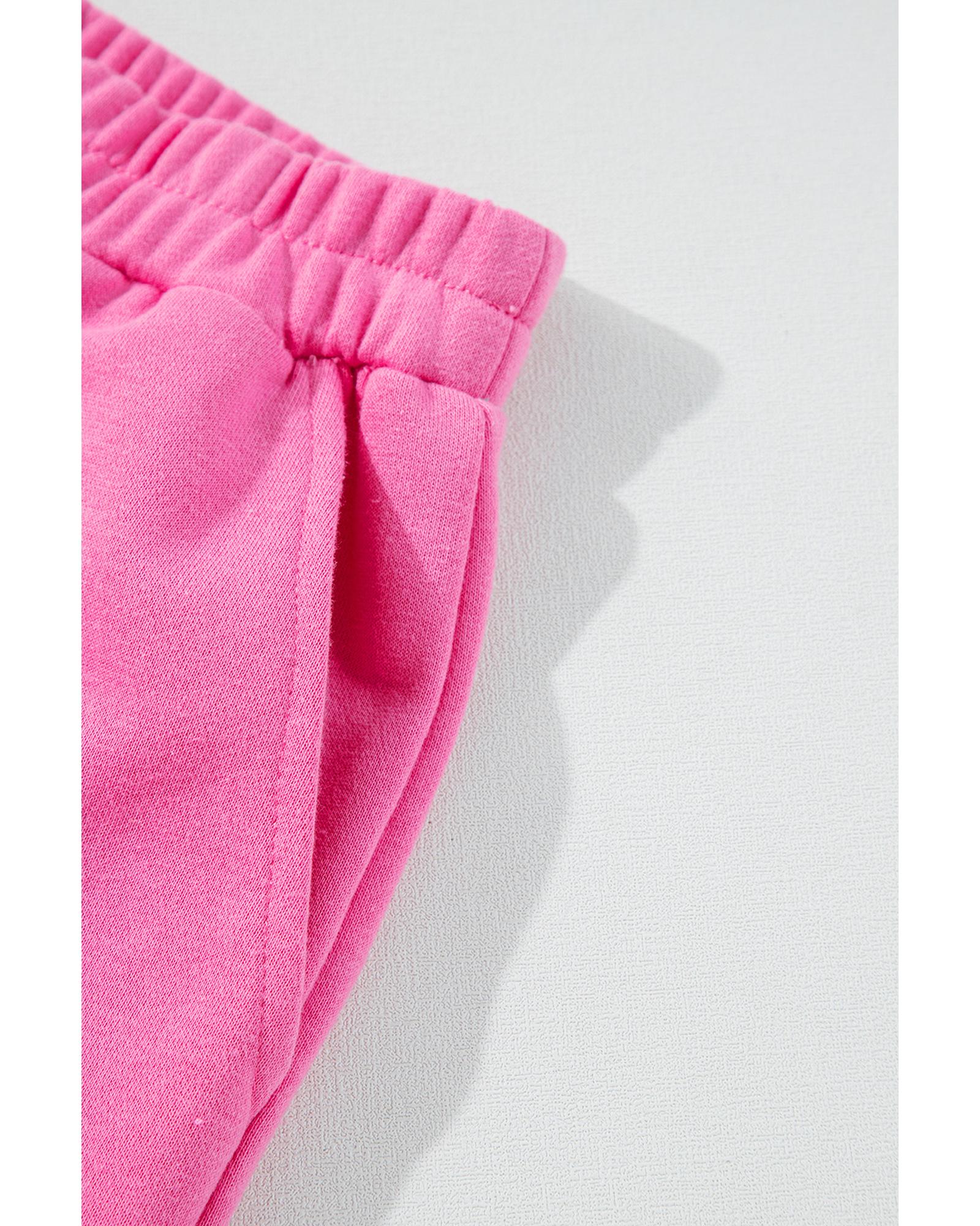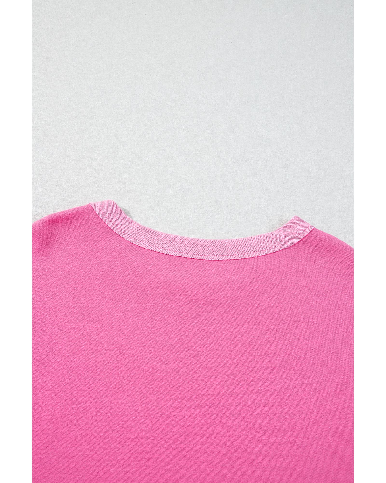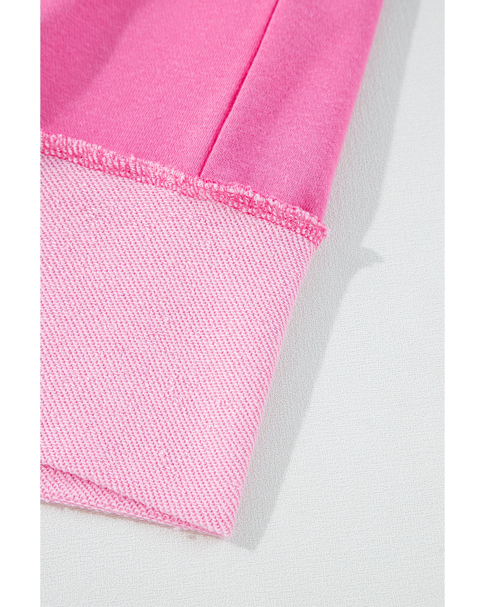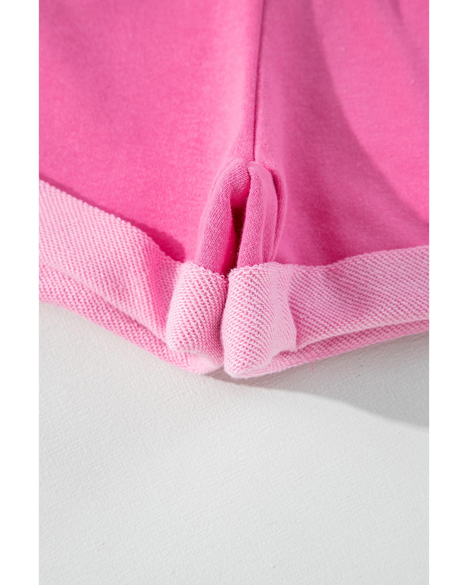 Sachet Pink High Low Patchwork Long Sleeve Top and Shorts Set – L