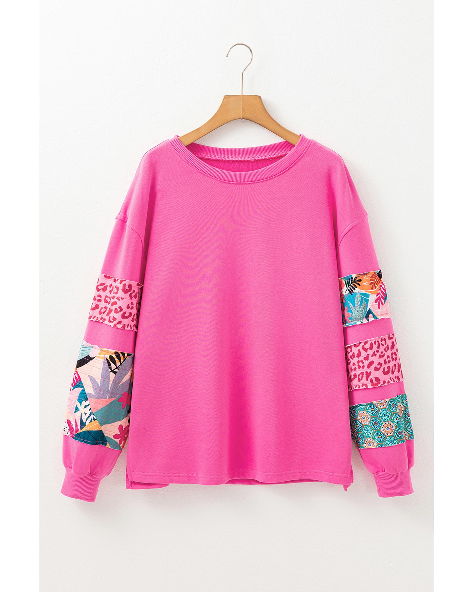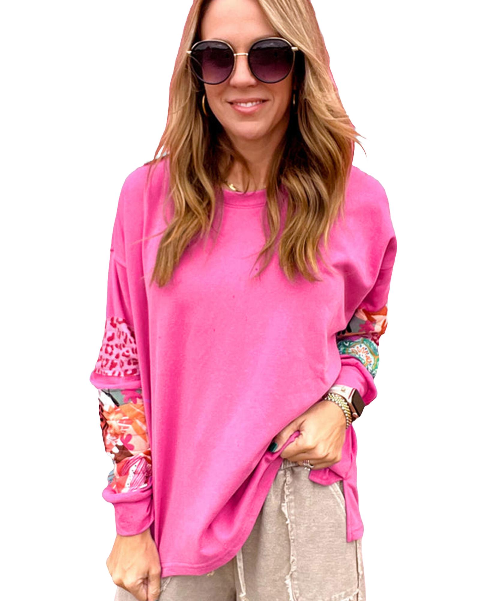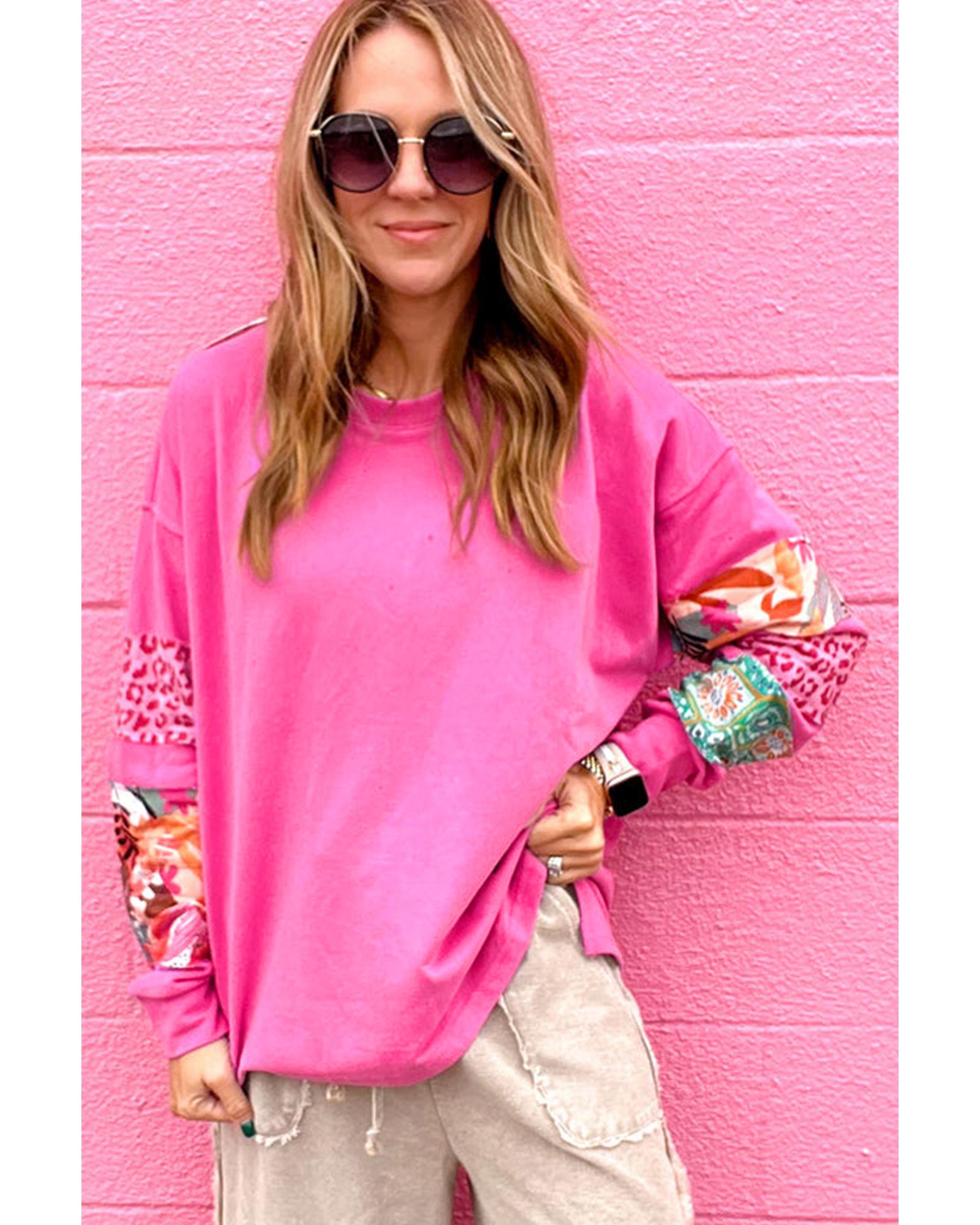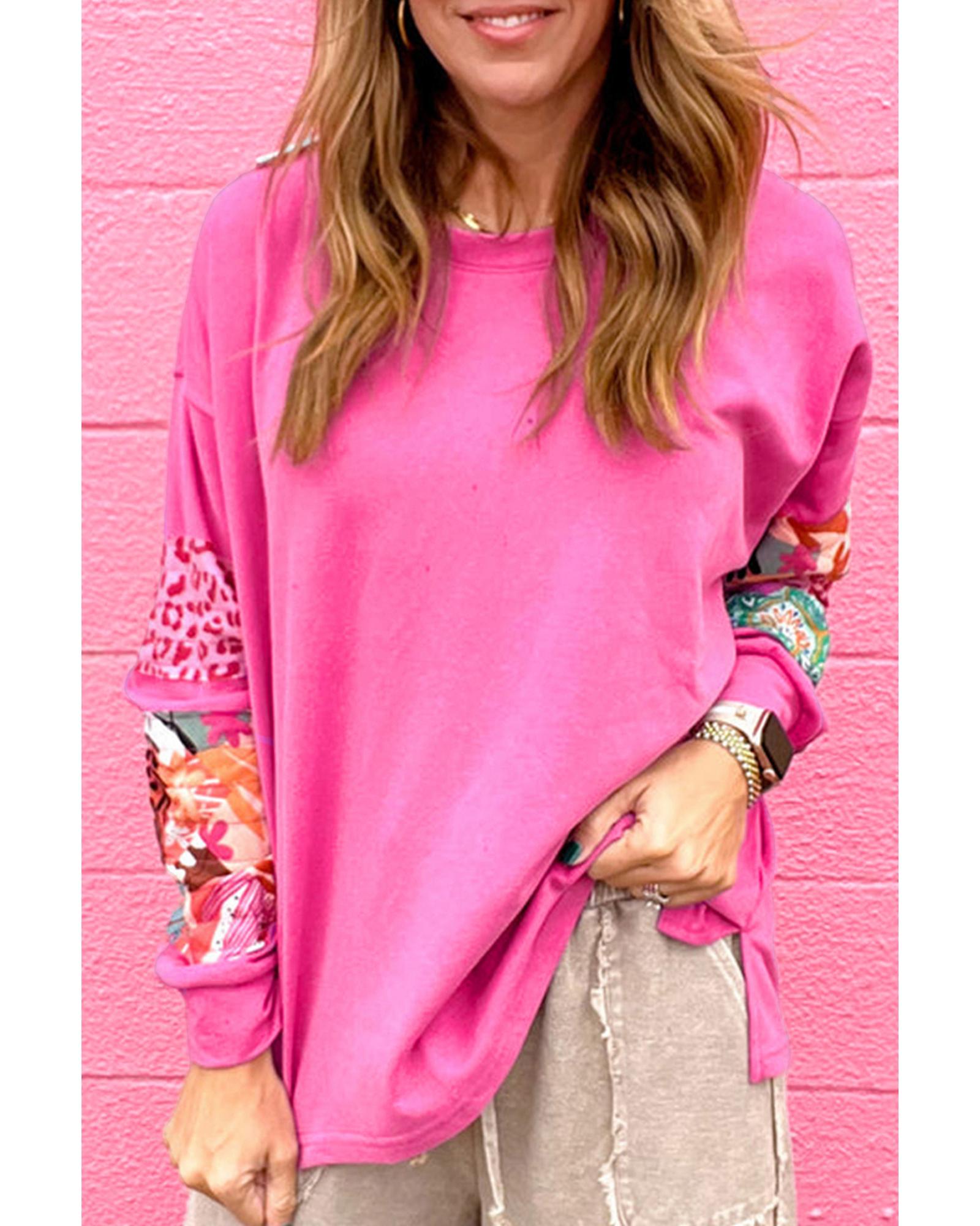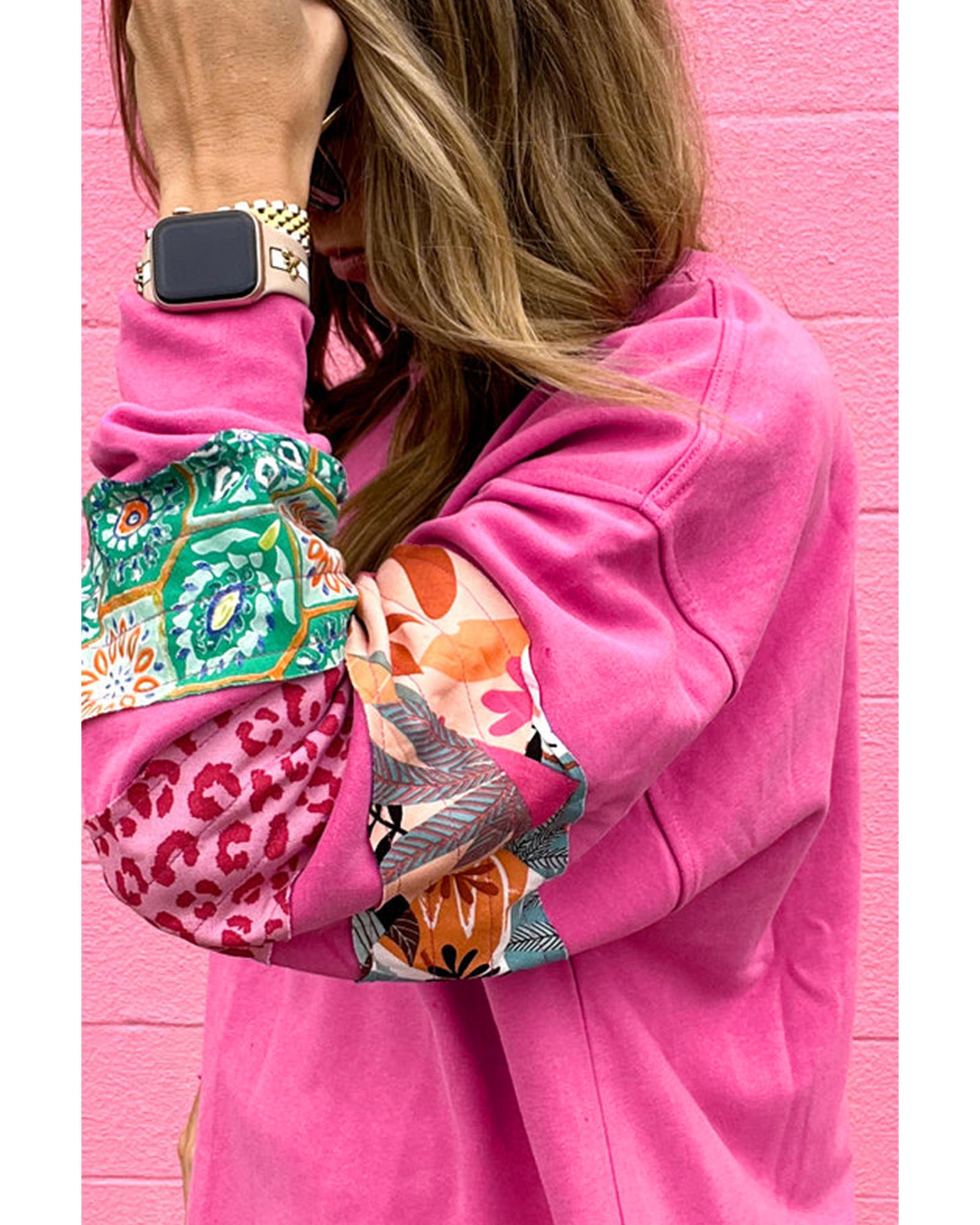 Sachet Pink Mixed Print Patch Drop Shoulder Pullover Top – S