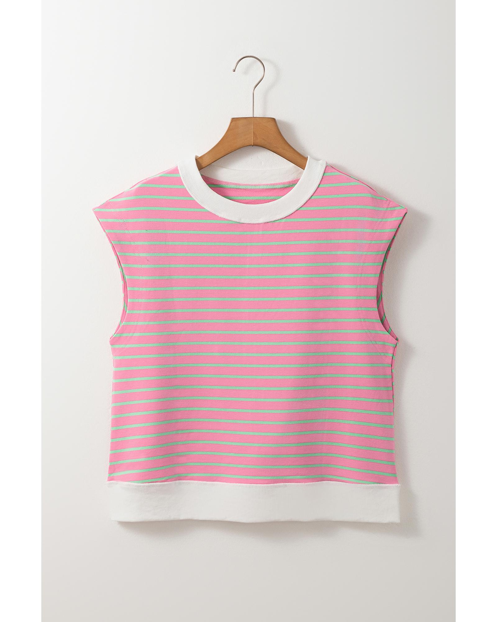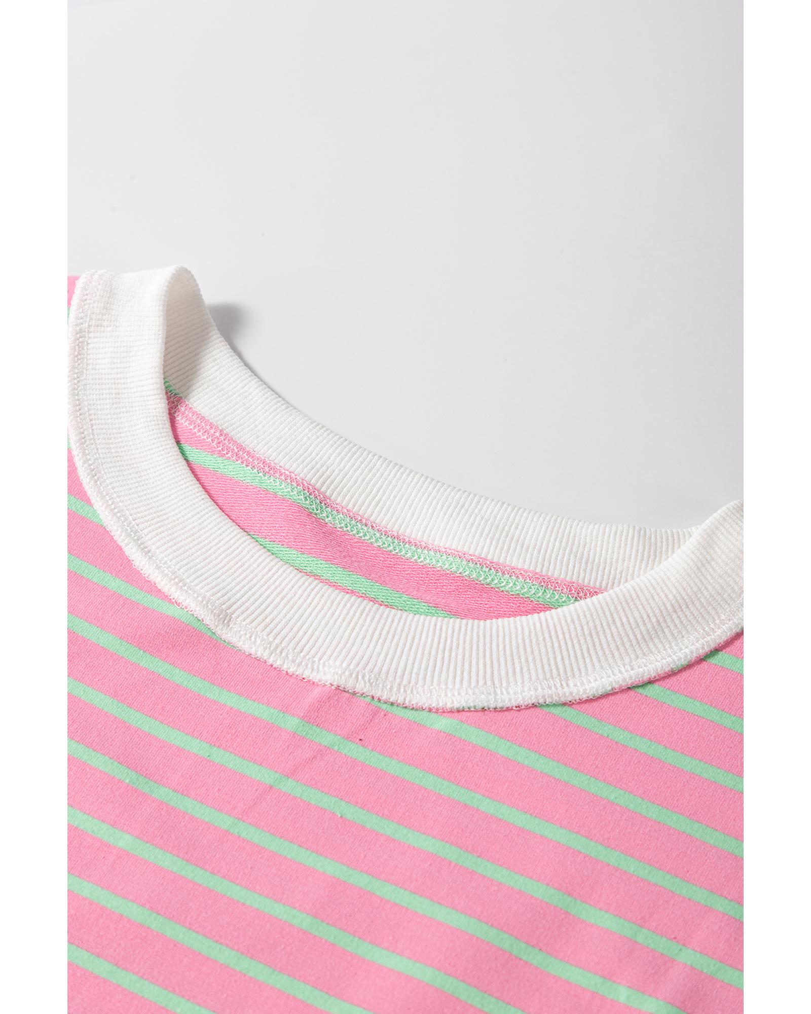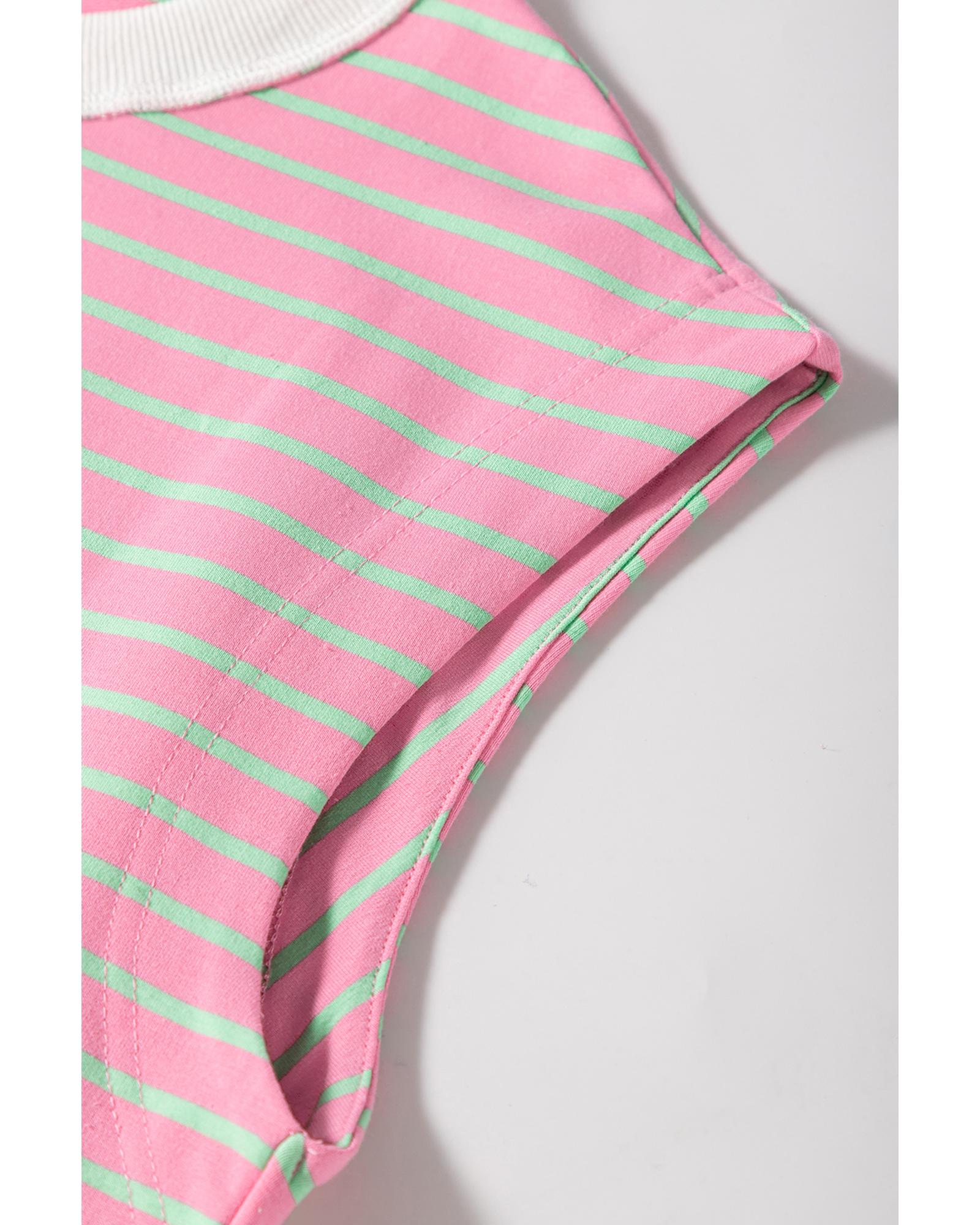 This stylish pink striped crew neck cap sleeve t-shirt is designed for women, offering a tailored fit that enhances your silhouette. Made from high-quality materials, it features intricate detailing that adds a touch of elegance to your casual wardrobe.