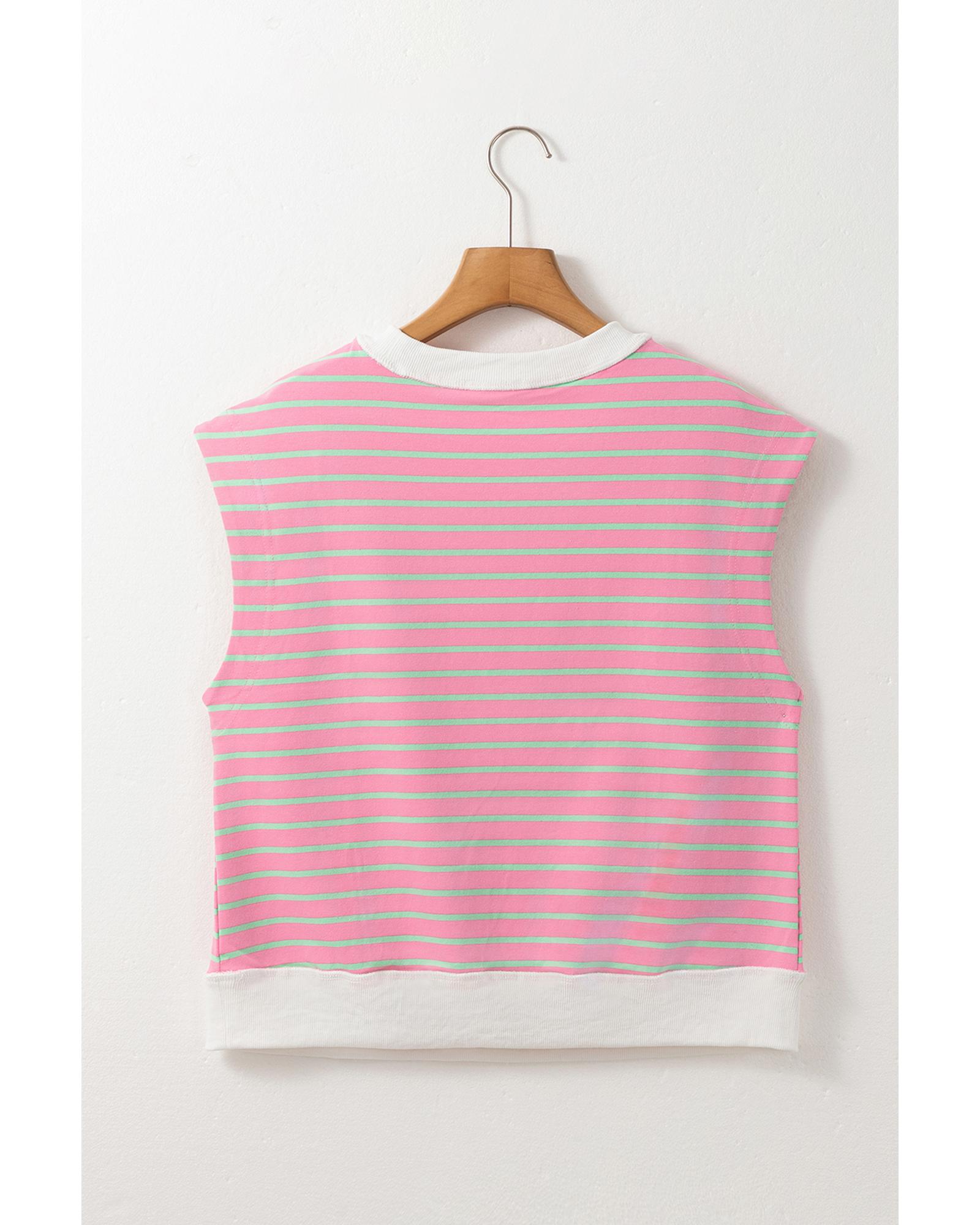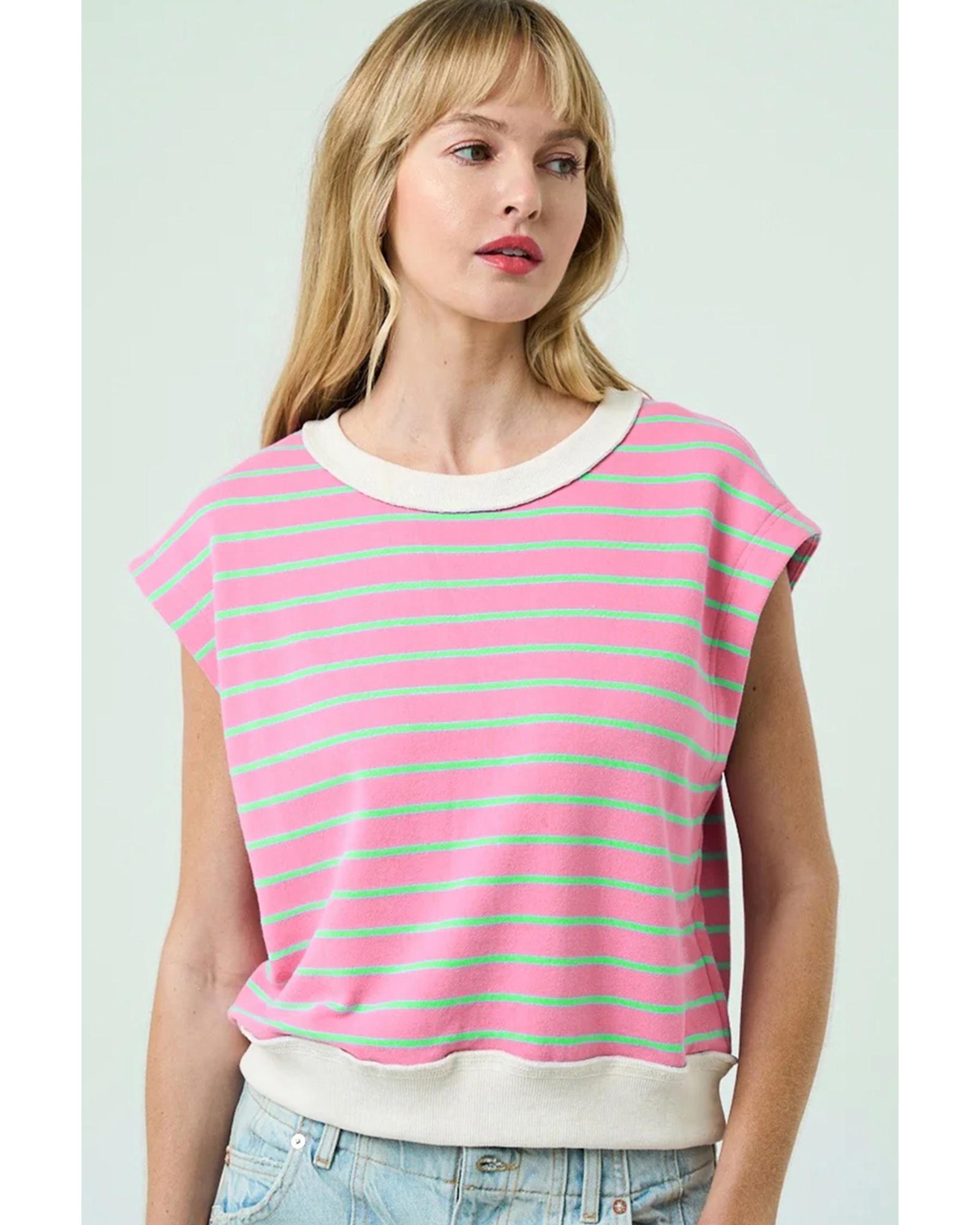 Package Content: 1 x Pink Striped Crew Neck Cap Sleeve T Shirt