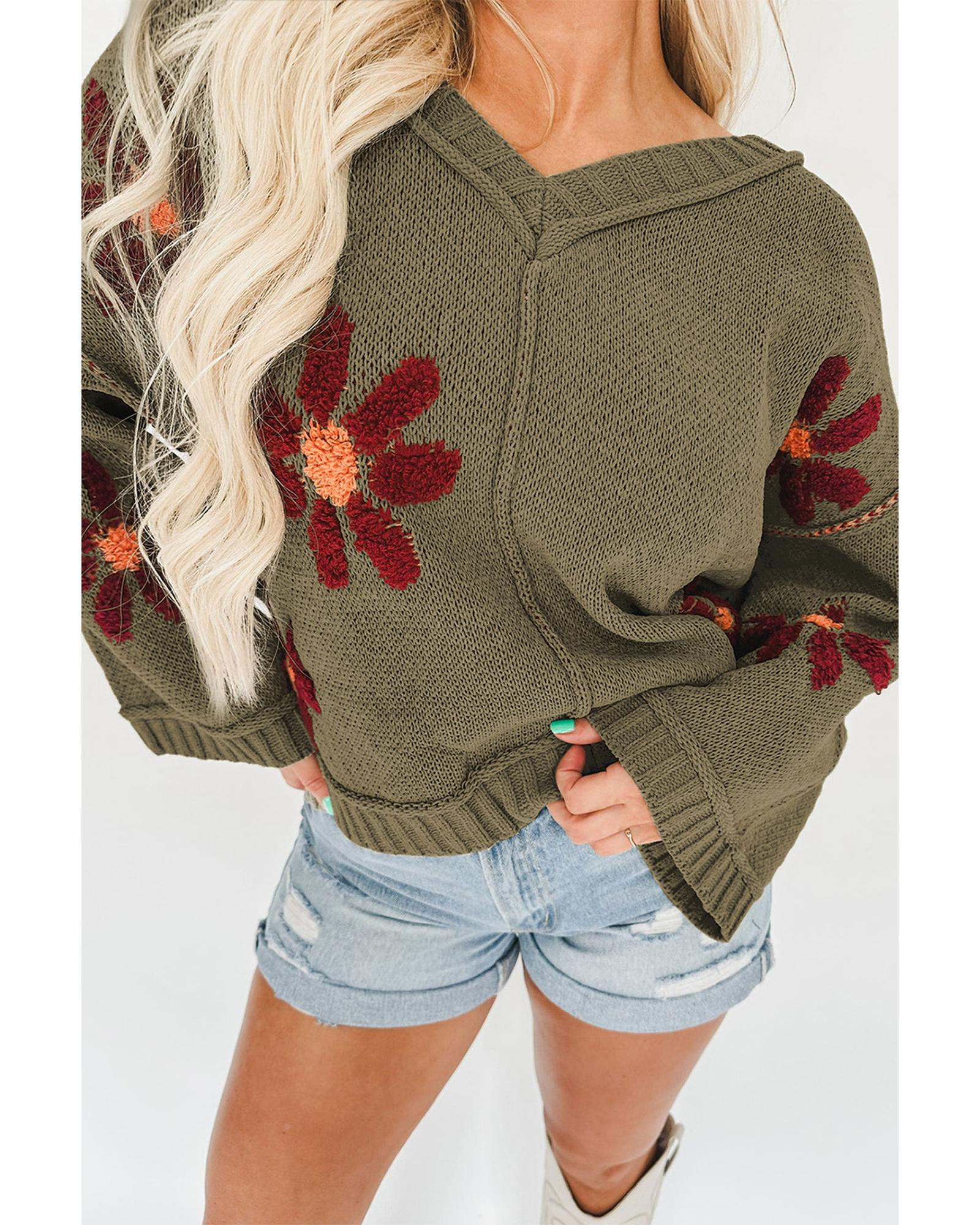 This sweater features a stylish sage green flower knit design with a ribbed trim for a comfortable fit. The V neckline adds a touch of sophistication, making it suitable for various occasions. Crafted from high-quality materials, it offers durability and longevity.