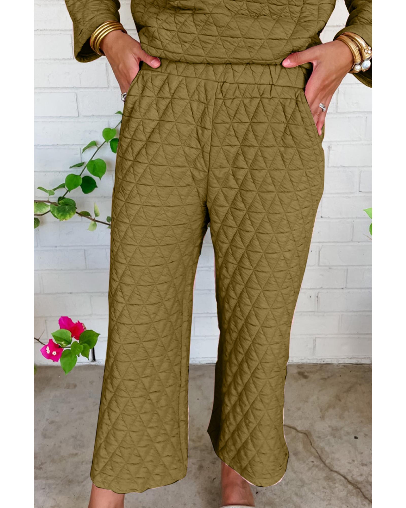 Sage Green Solid Quilted Pullover and Pants Outfit – S