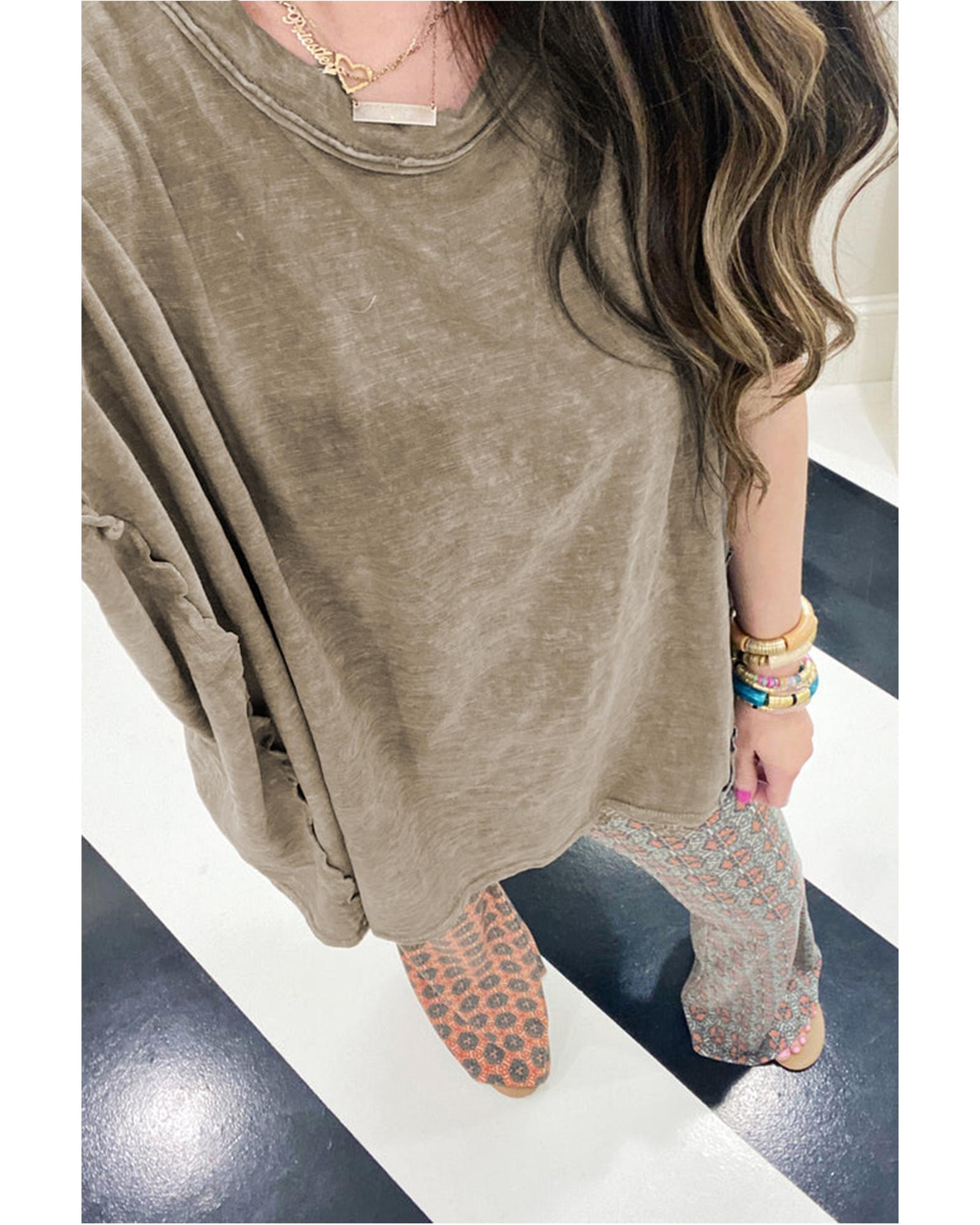 This vintage washed oversized T-shirt features a relaxed fit and unique design details, making it a versatile addition to casual wardrobes. The short dolman sleeves and raw edges contribute to its trendy, laid-back style, while the exposed patchwork adds a distinctive touch. Crafted from high-elasticity cotton, it offers comfort and durability for everyday wear.