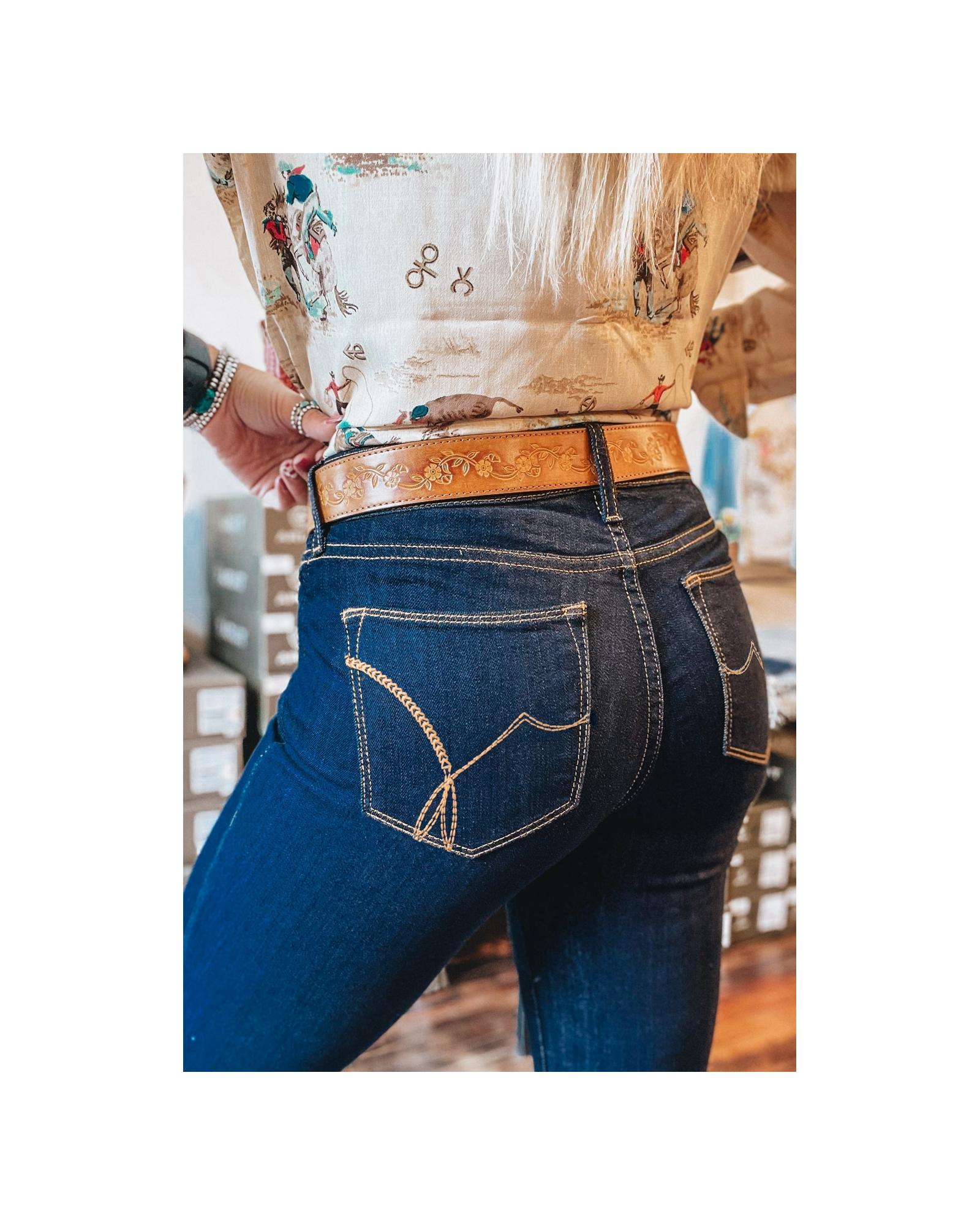 These blue center seam straight jeans feature a classic deep wash and a timeless silhouette, making them suitable for various occasions. The unique center seam adds a stylish detail, enhancing the overall look and providing a slimming effect. Designed for everyday wear, these jeans combine comfort and fashion effortlessly.
