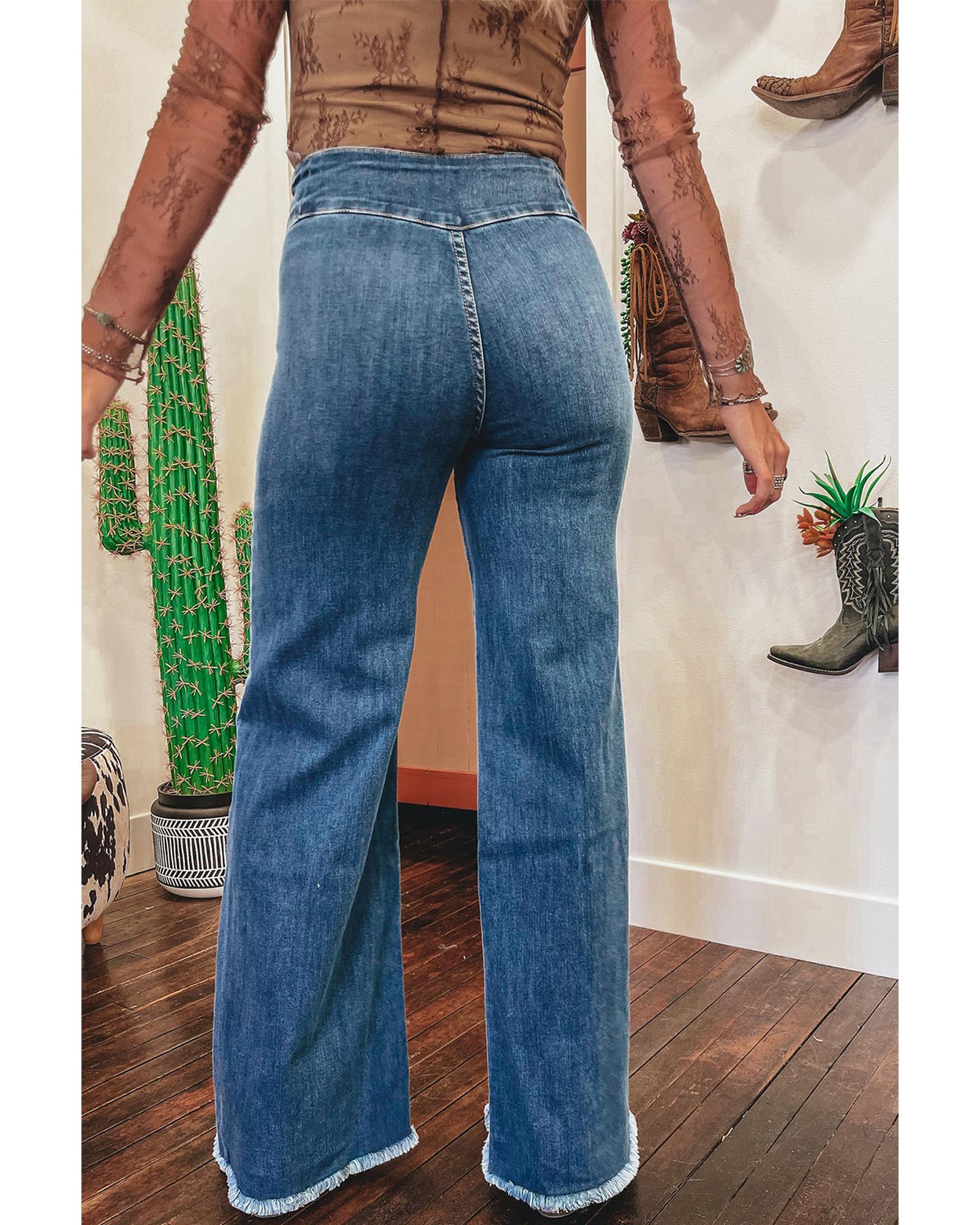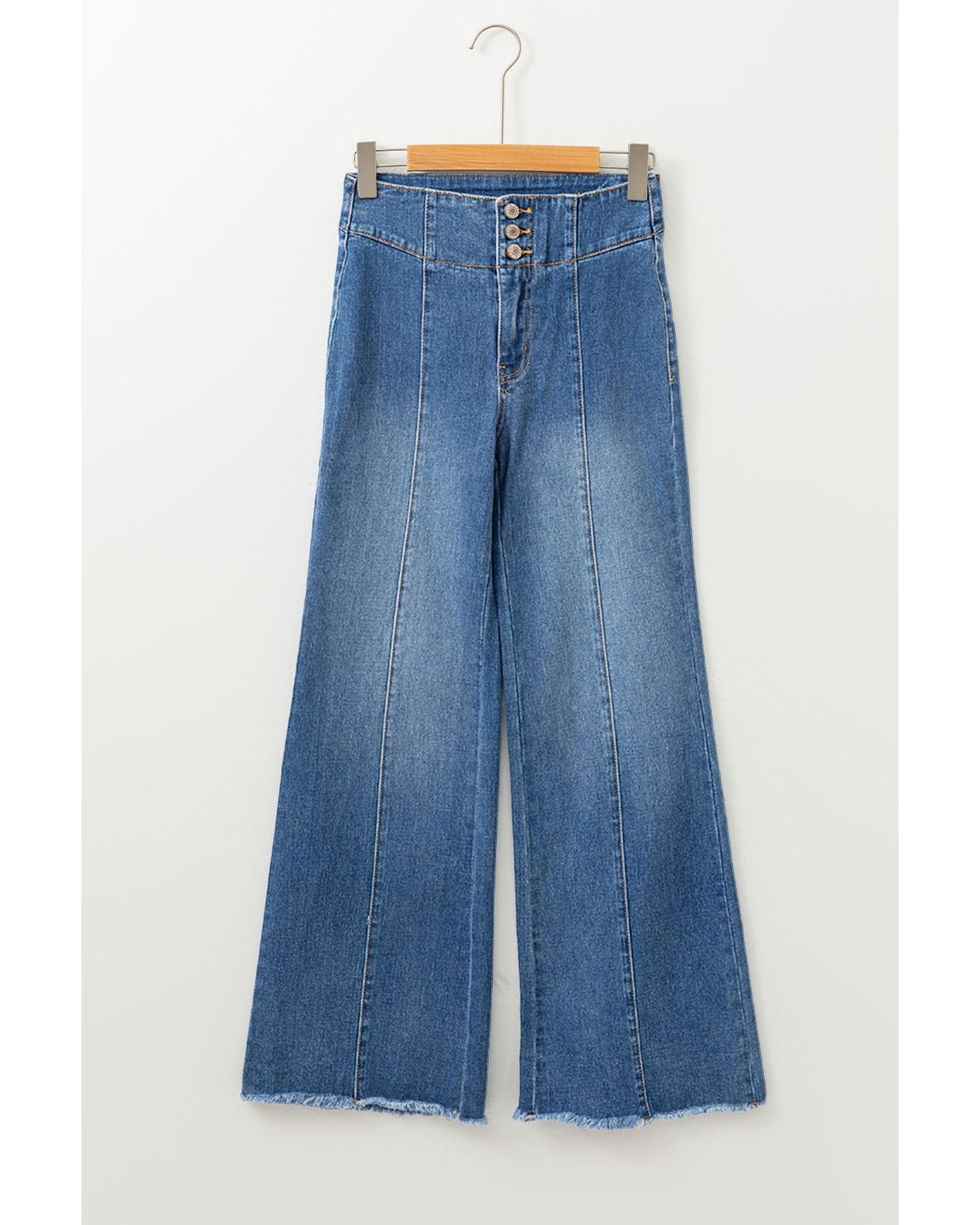 Sail Blue High Waist Button Fly Seamed Raw Hem Flare Jeans – 10 US