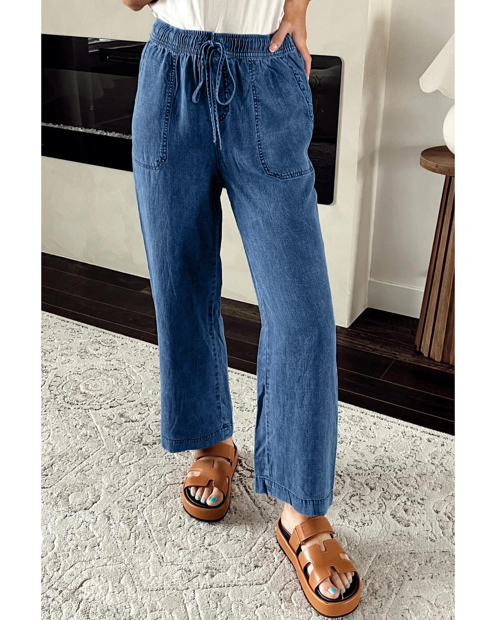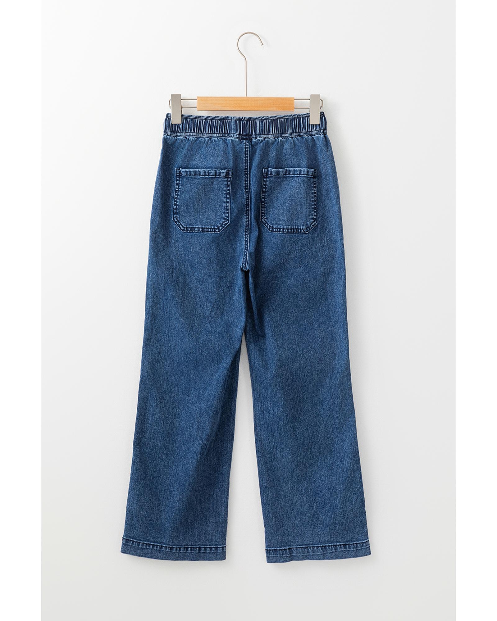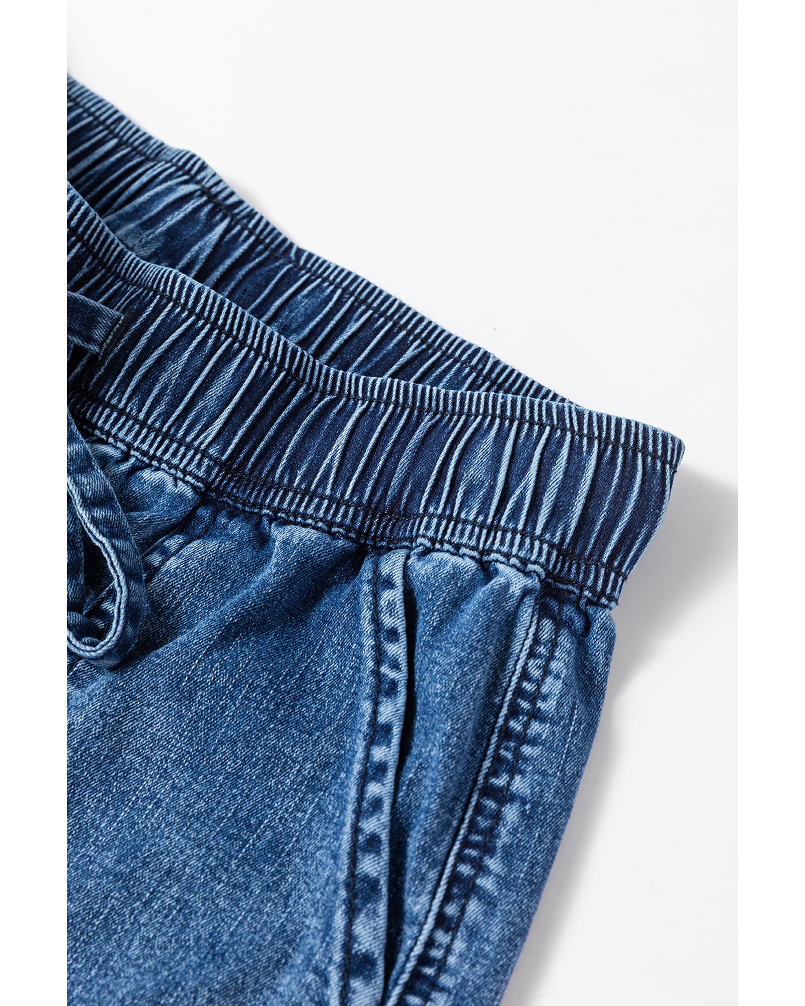Sail Blue Mineral Wash Drawstring Waist Loose Straight Denim Pants – 10 US