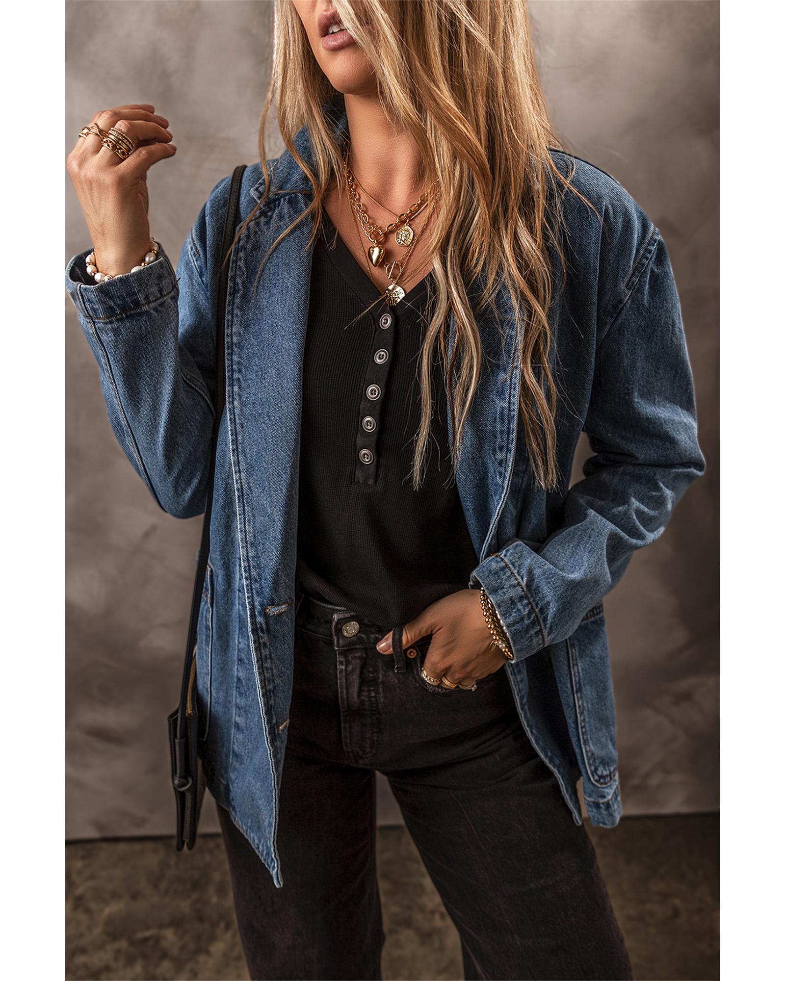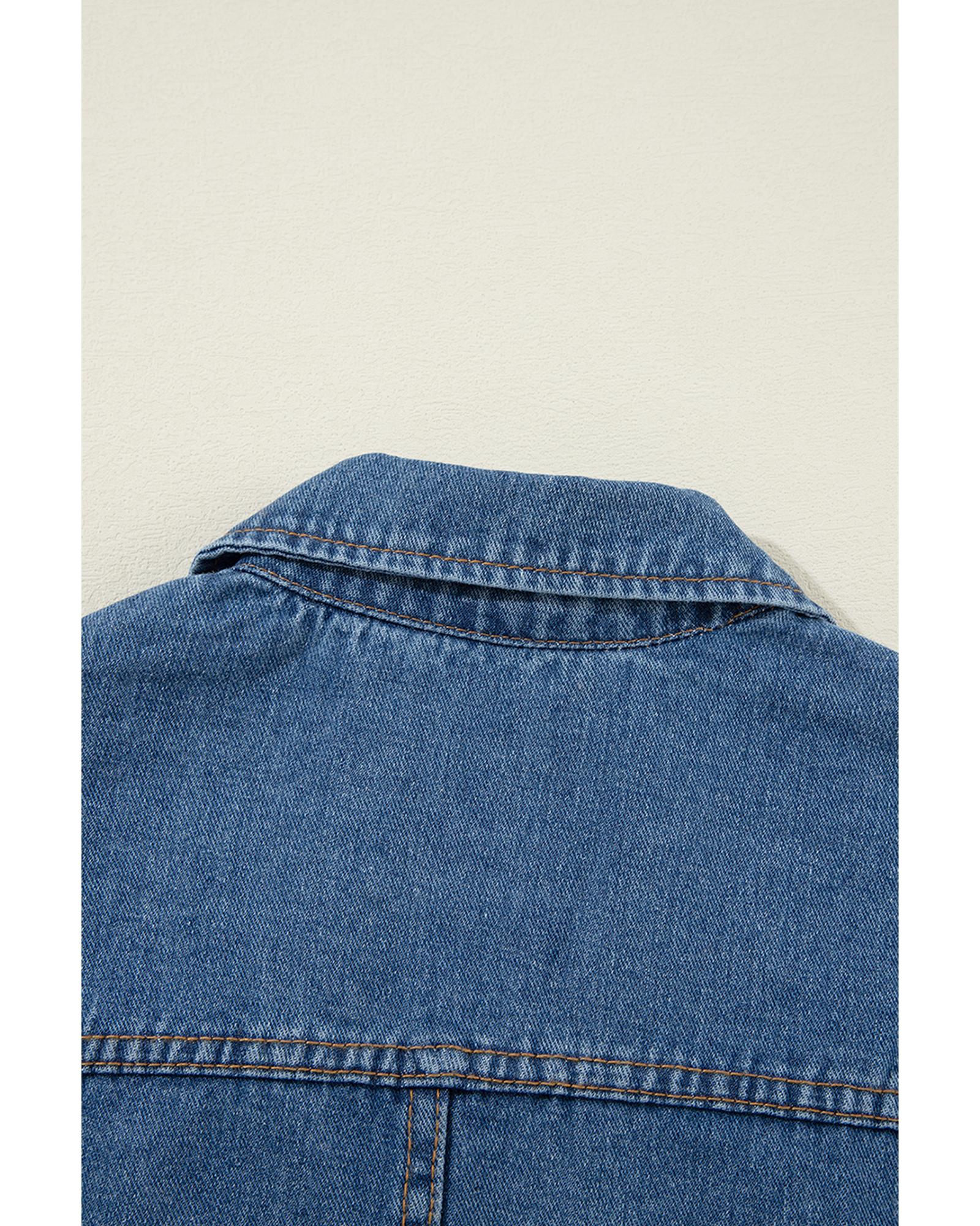 Sail Blue Side Pockets Lapel Collar Denim Jacket – L