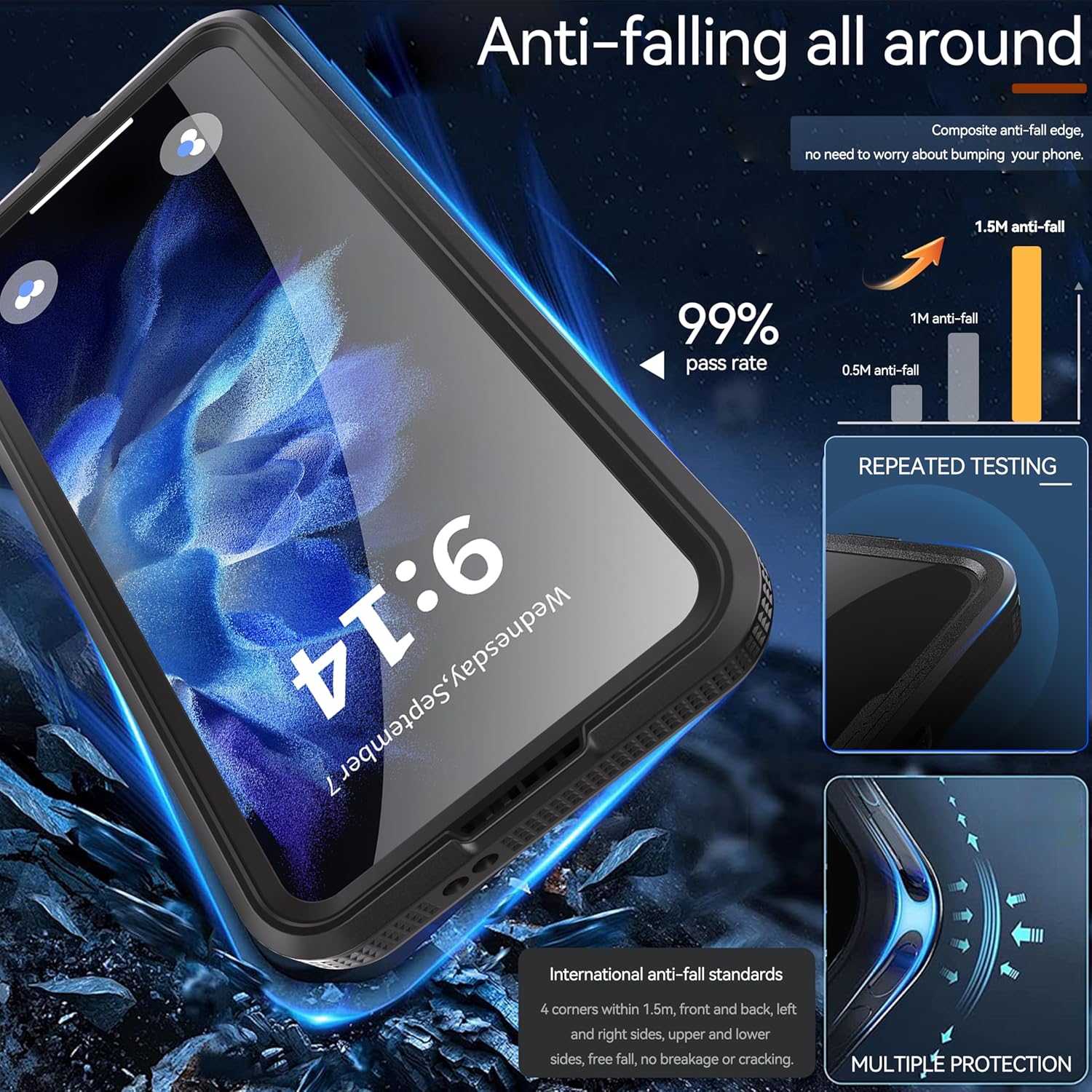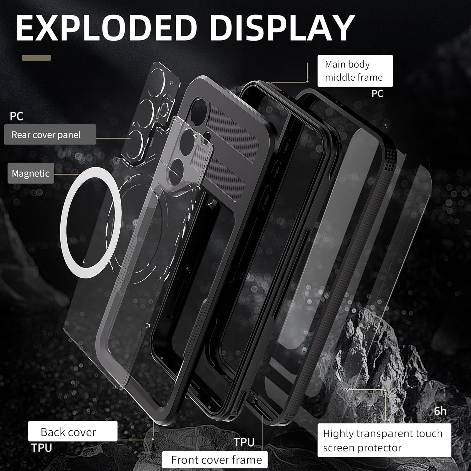 This waterproof case offers comprehensive protection for the Galaxy S25 Plus, combining durability with enhanced audio quality. It is designed to withstand water exposure and impacts while maintaining clear sound and screen visibility, making it suitable for various outdoor activities and daily use.
