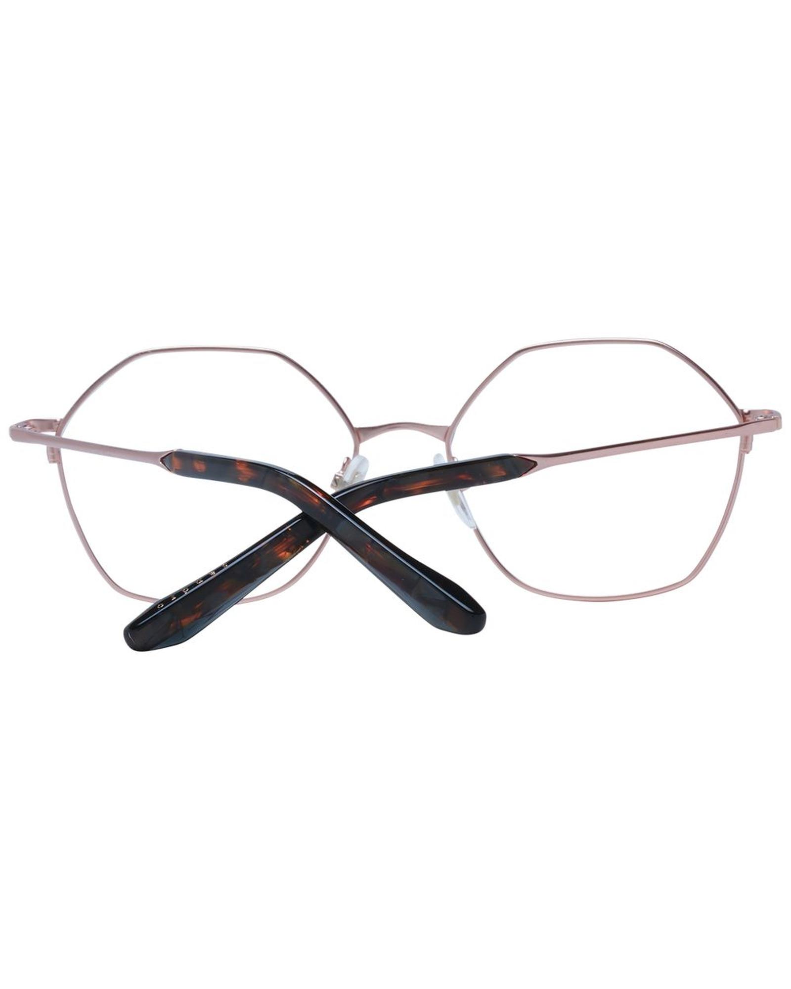 This pair of optical frames features a stylish rose gold design, suitable for women. Crafted from stainless steel, the frames offer durability and a sleek appearance. The lenses are made of plastic with demo glasses for fitting purposes, providing a comfortable and fashionable accessory for everyday wear.