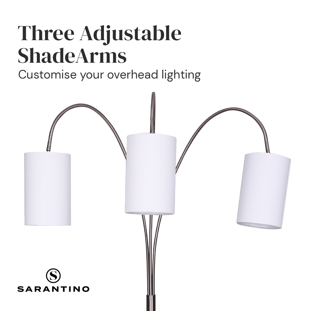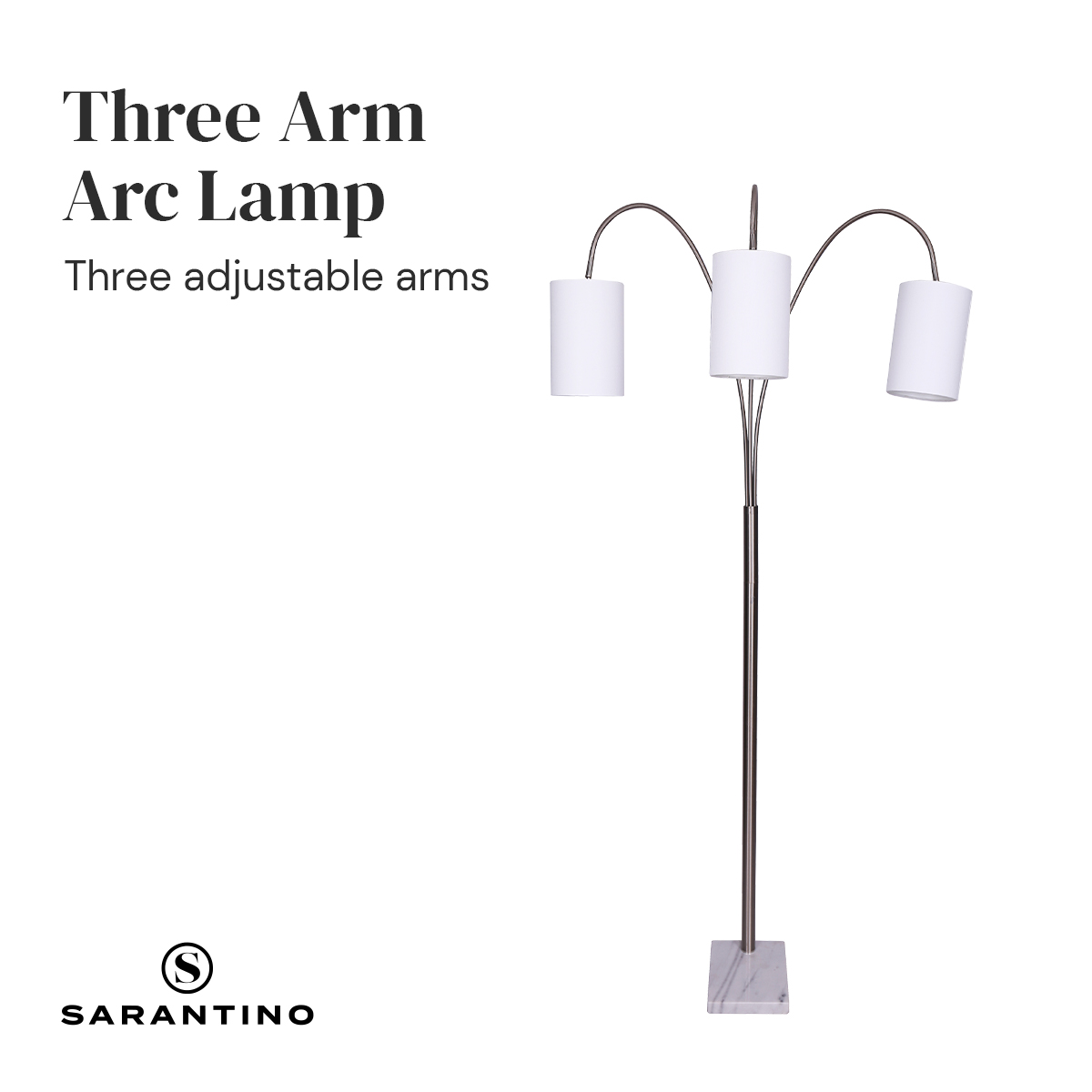 Sarantino 3-Light Metal Arc Floor Lamp – Nickel & Marble Finish