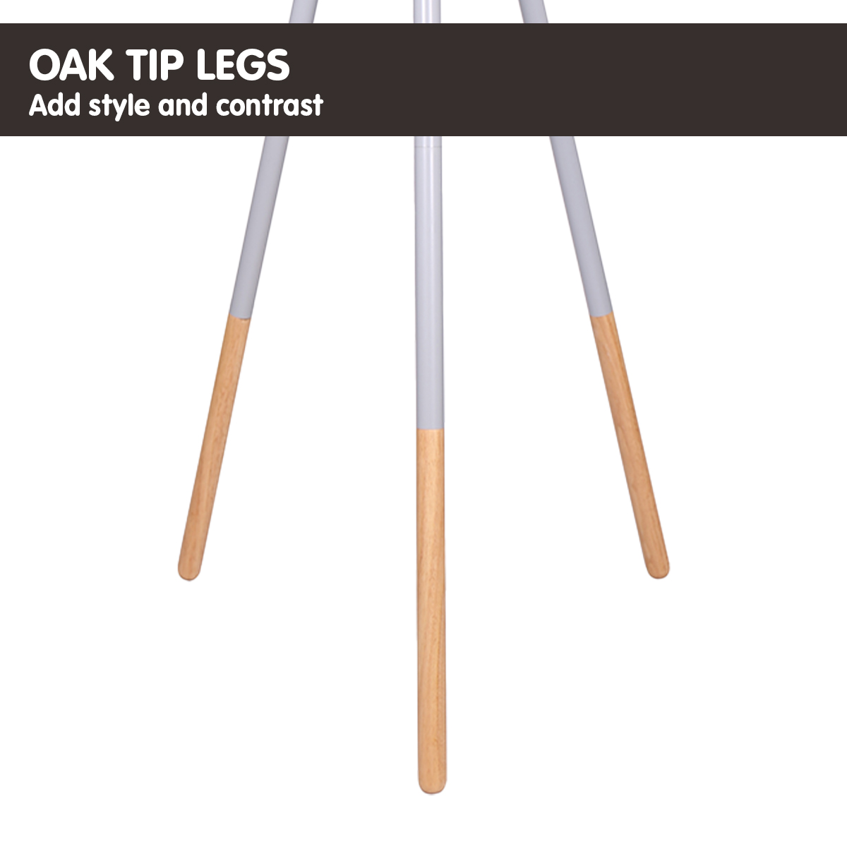• Painted metal and rubberwood legs